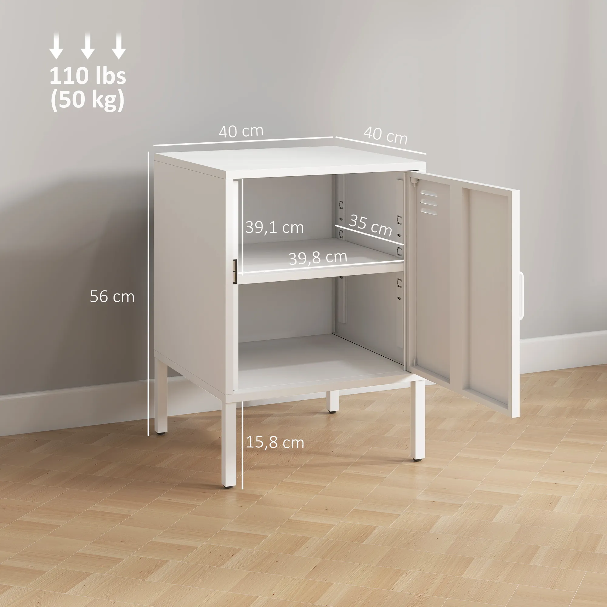 Het [BRAND NAME] nachtkastje combineert eenvoudig design met praktisch gemak. De natuurlijke ventilatieopeningen en strakke lijnen zorgen voor een frisse en moderne uitstraling. Het verstelbare vak houdt al je nachtelijke benodigdheden binnen handbereik. Dit compacte nachtkastje is perfect voor kleine slaapkamers of lichte woonruimtes, met onopvallende charme en solide stabiliteit dankzij het stalen frame.