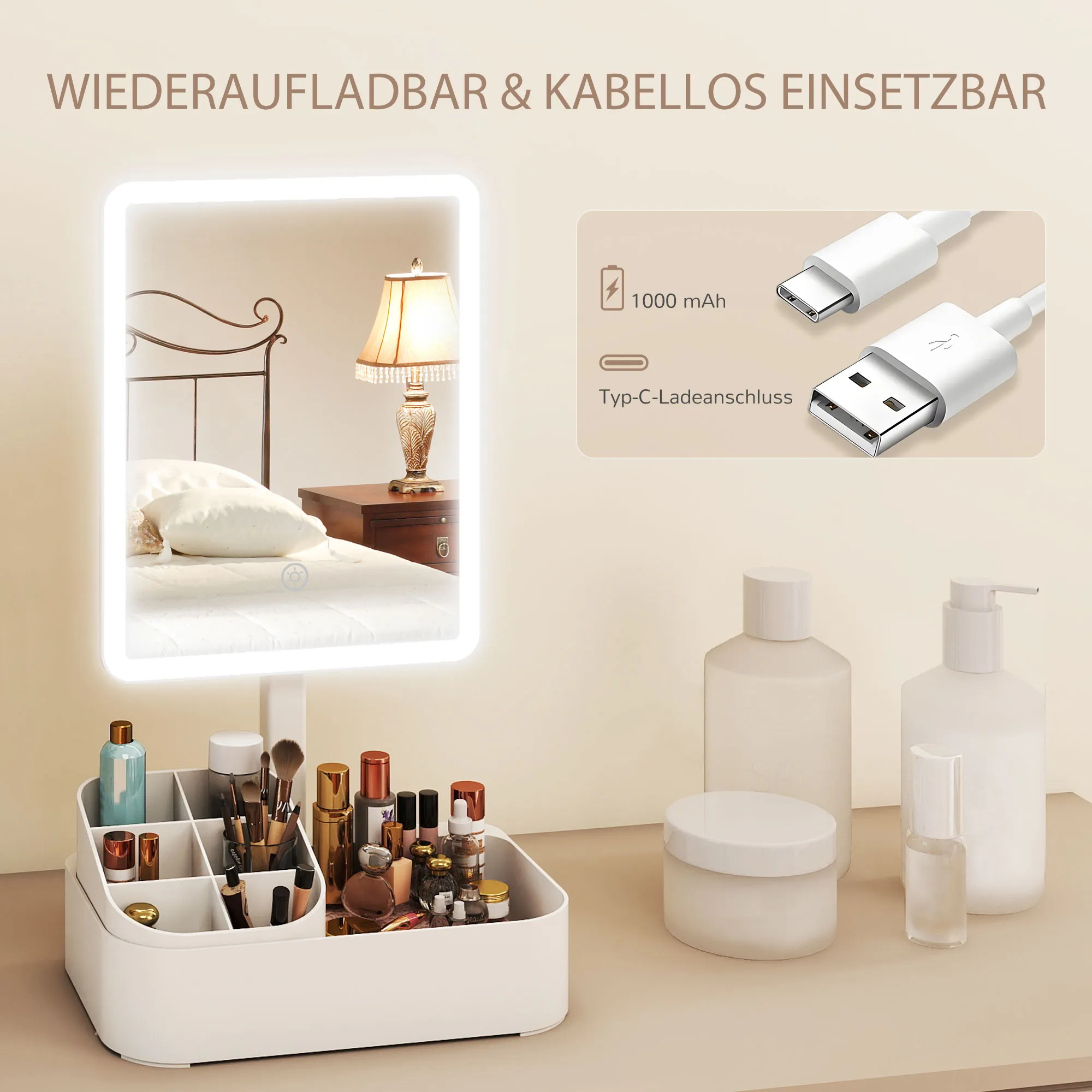 Upgrade je dagelijkse schoonheidsroutine met de [BRAND NAME] make-up spiegel met verlichting! Met een simpele aanraking schakel je tussen warm (3500K) en koel (7000K) licht en pas je de helderheid aan door de touch-knop ingedrukt te houden. De 180-graden draaifunctie van de make-up spiegel zorgt ervoor dat je altijd de perfecte hoek vindt. Met de geïntegreerde opbergdoos blijven al je beauty essentials netjes geordend. Een perfecte mix van functionaliteit en stijl voor jouw kaptafel.