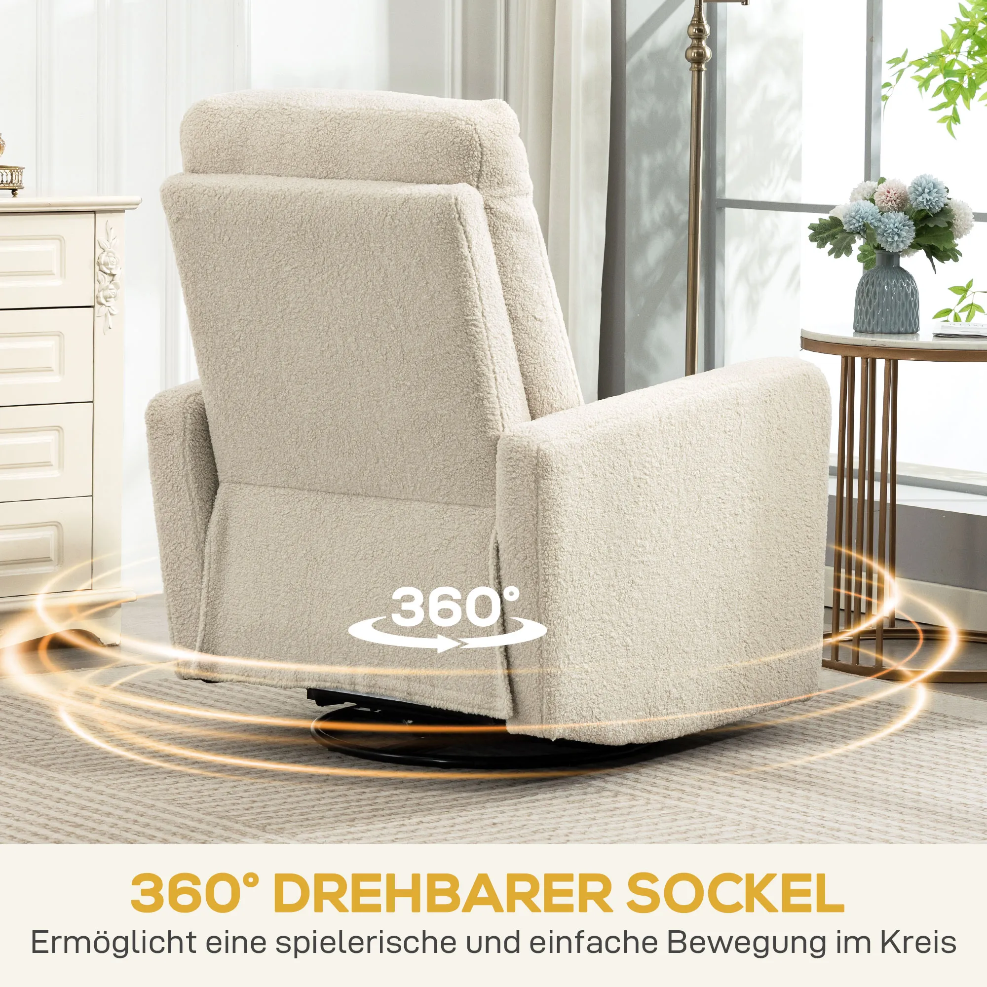 - Volledige ontspanning: verstelbare rugleuning, 360° draaibaar en zachte fleecehoes