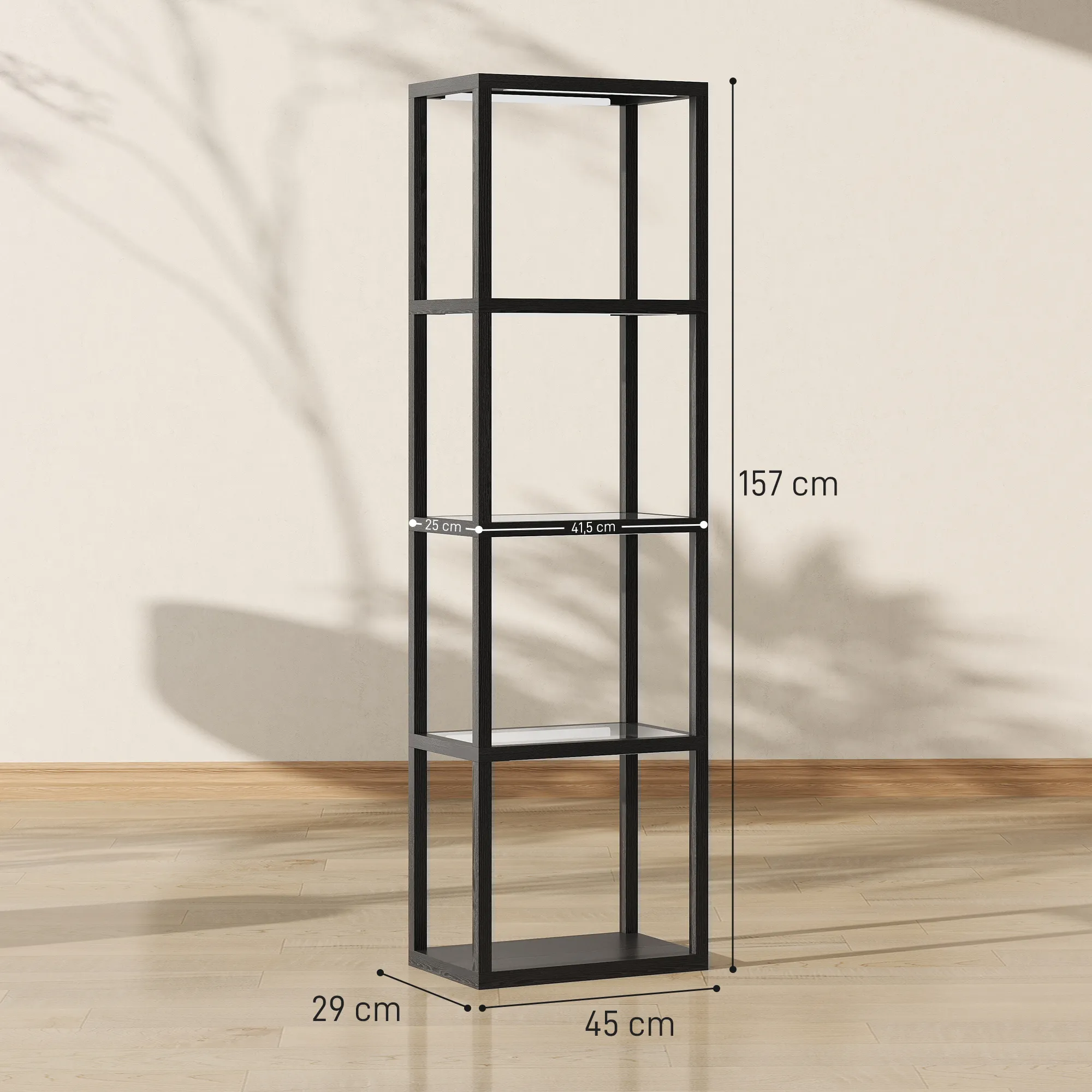 TRUUSK RGB Staande Lamp – Met Glazen Planken – 4-Niveaus LED – Afstandsbediening – Muzieksynchronisatie – Zwart