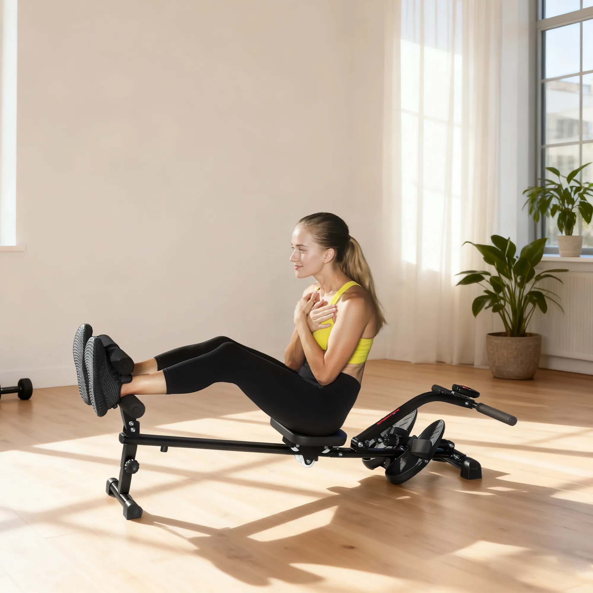 Ontdek de [BRAND NAME] roeimachine voor thuisgebruik, waarmee je geniet van een stille en zachte training dankzij de 12 variabele hydraulische weerstanden. Dit cardio-apparaat combineert een roeimachine met een sit-up station voor een complete full-body workout. Het verticale opbergontwerp bespaart ruimte en maakt het ideaal voor thuisgebruik.