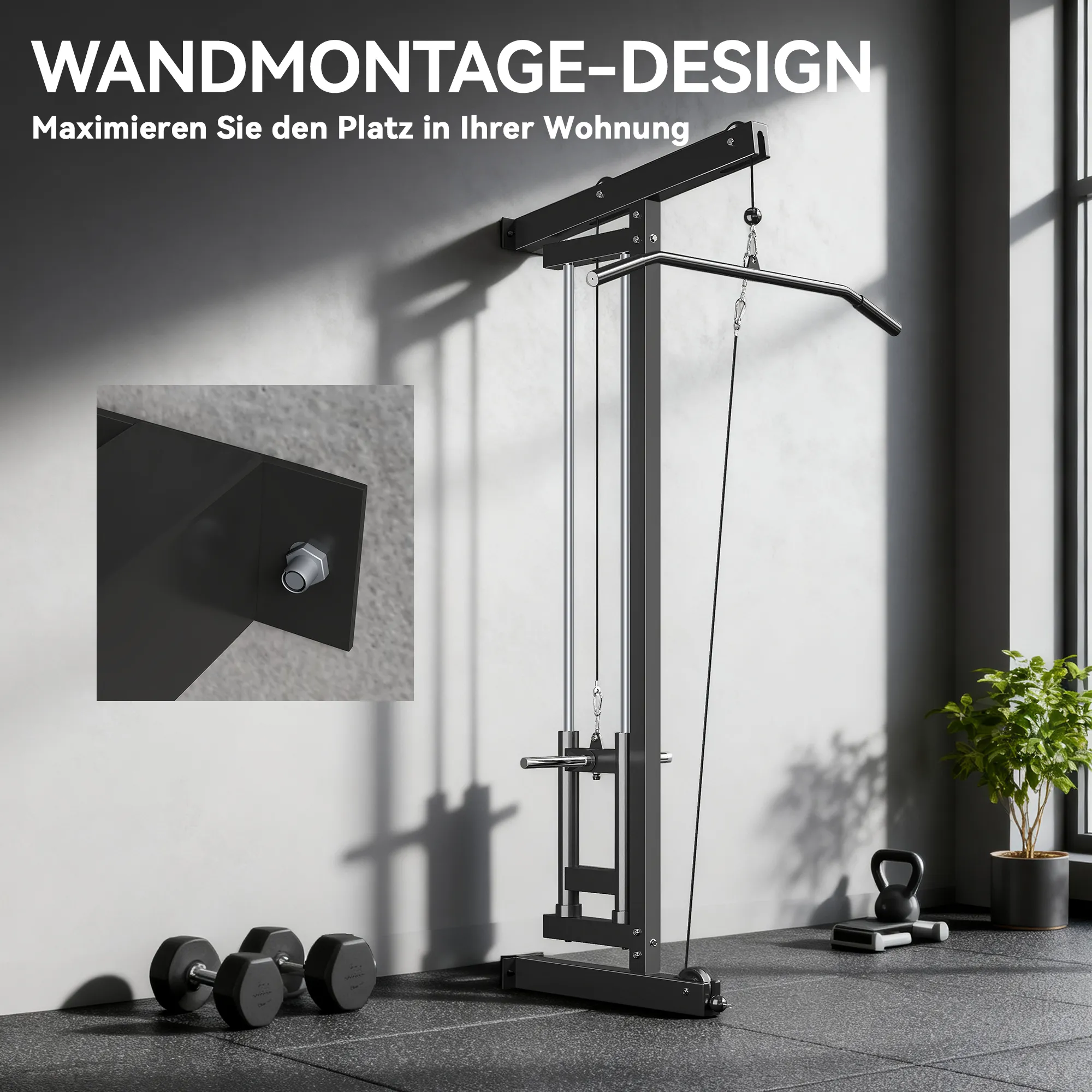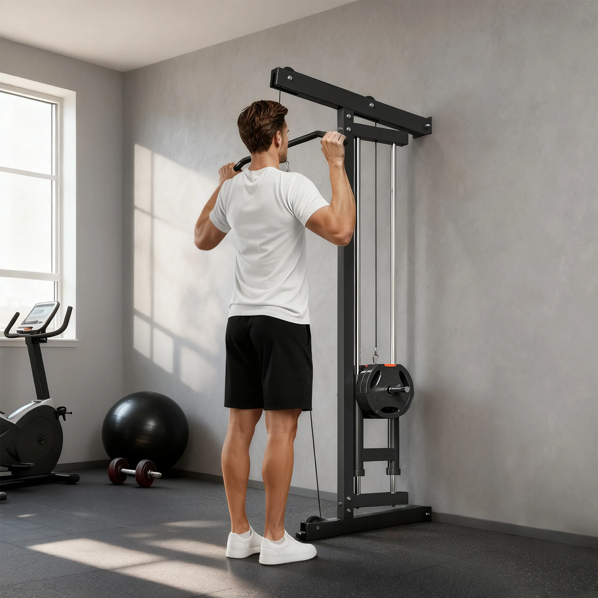 Moeite om een volledige workout in een vol huis te passen? Maak nu optimaal gebruik van die ongebruikte hoek! Deze [BRAND NAME] Wand Lat Pulldown Tower maakt van weinig ruimte een persoonlijke trainingsruimte. Met dit compacte kabelstation geniet u van een total body workout – van roeioefeningen tot intensieve stretches. Ervaar fitnessstudio-kwaliteit en orde direct bij u thuis met de lat pulldown machine.