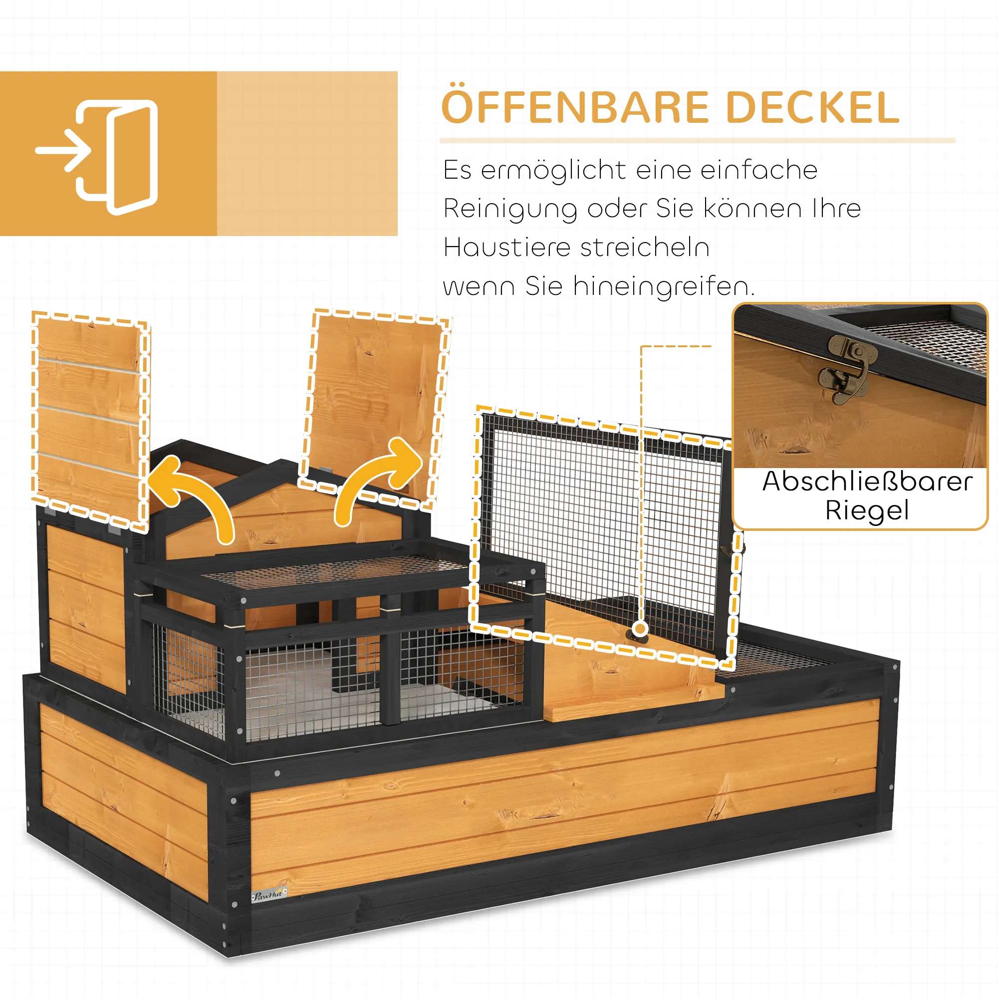 Gun je huisdieren het TRUUSK schildpaddenverblijf – een ruime toevluchtsoord waar ze kunnen gedijen. Met drie kamers en twee verdiepingen hebben ze veel vrije ruimte om te verkennen. De ladder verbindt de verdiepingen, waardoor het op- en afstappen gemakkelijk is. De opklapbare daken zorgen voor eenvoudige toegang en de uitschuifbare inzetstukken maken het reinigen een fluitje van een cent. Gemaakt van sparrenhout en gecoat met waterdichte verf, is dit verblijf ideaal voor zowel binnen als buiten.
