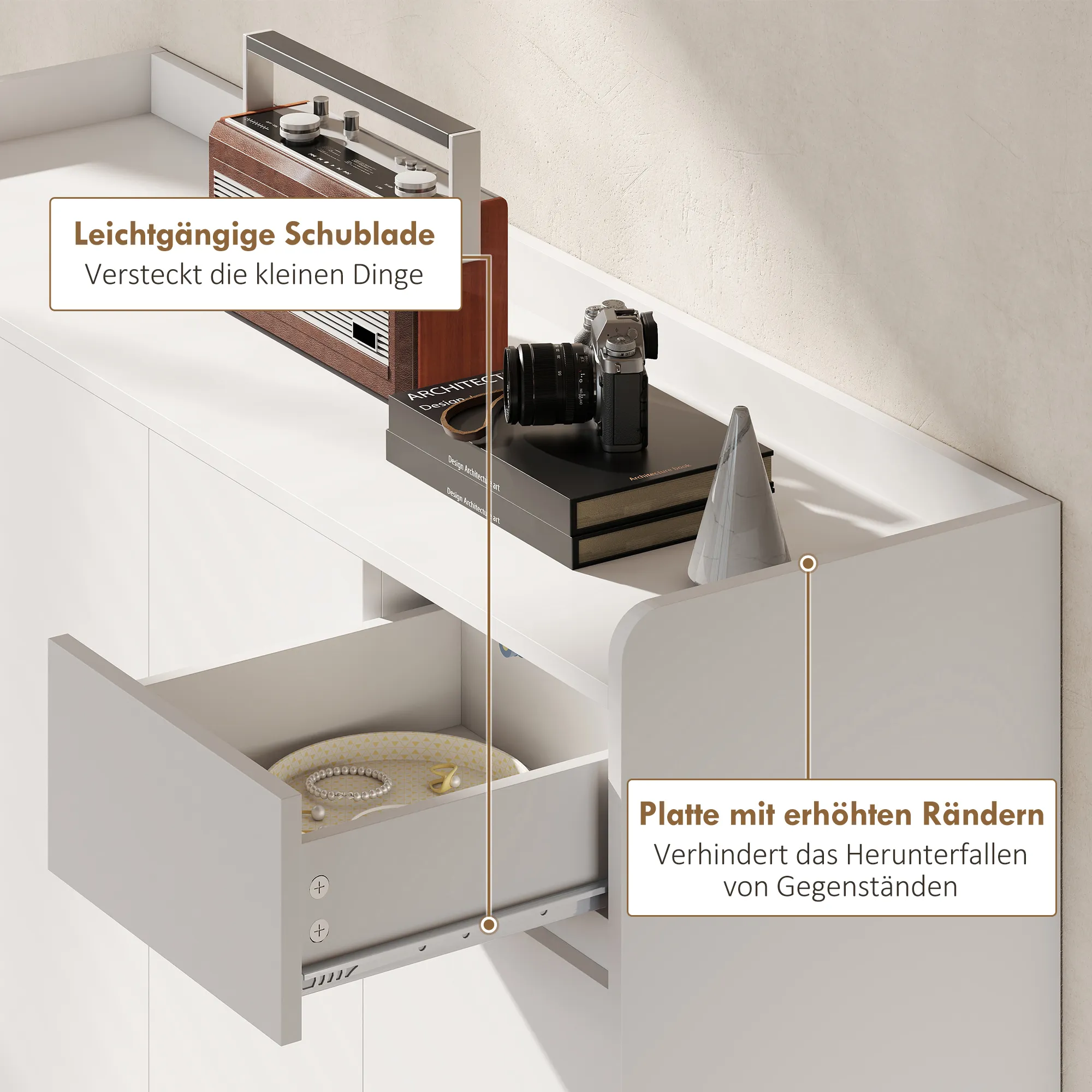 - Efficiënte opbergruimte: drie grote kasten, een lade en drie open rekken houden je entree netjes