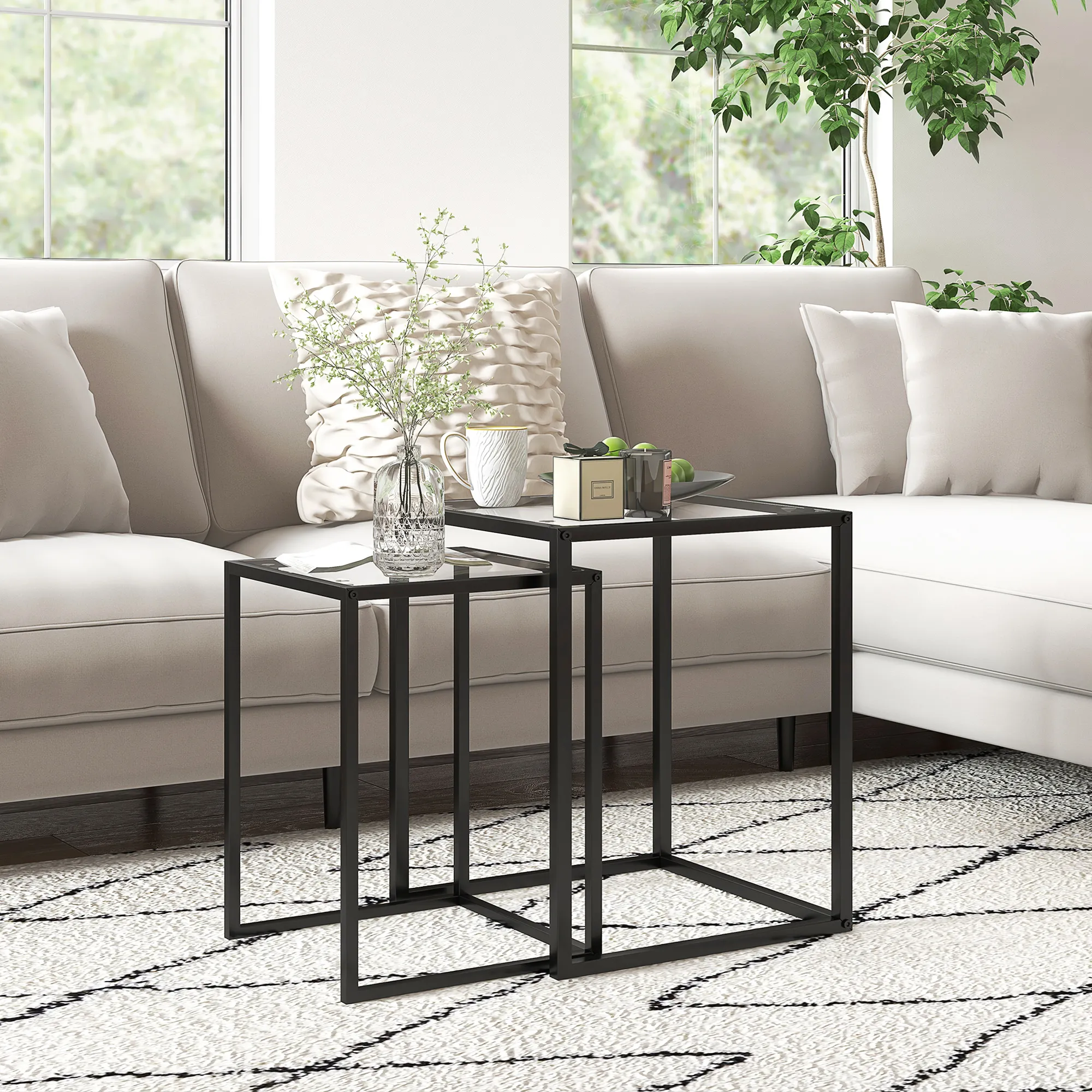 Voeg wat stijlvolle en praktische opbergruimte toe aan je woonkamer of kantoor met de bijzettafelset van TRUUSK! Deze set bevat een kleine en een grotere bijzettafel die handig in elkaar passen, waardoor je ruimte bespaart. Het stevige en schokbestendige tafelblad van gehard glas is makkelijk schoon te maken met een vochtige doek en daarna droog te vegen. Deze veelzijdige bijzettafelset zal jouw ruimte direct verrijken.