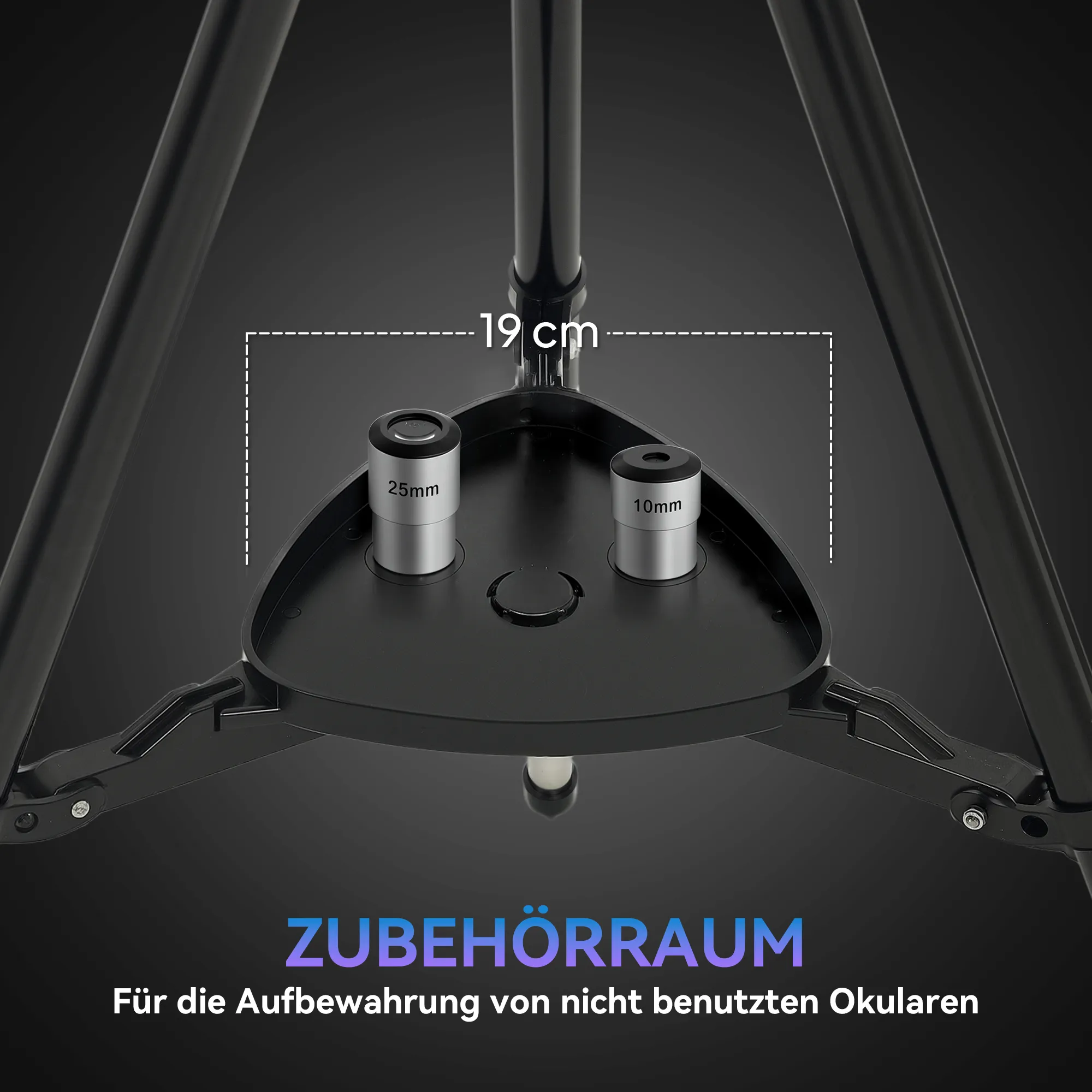 - Verstelbaar statief: met accessoirebakje voor ongebruikte oculairs
