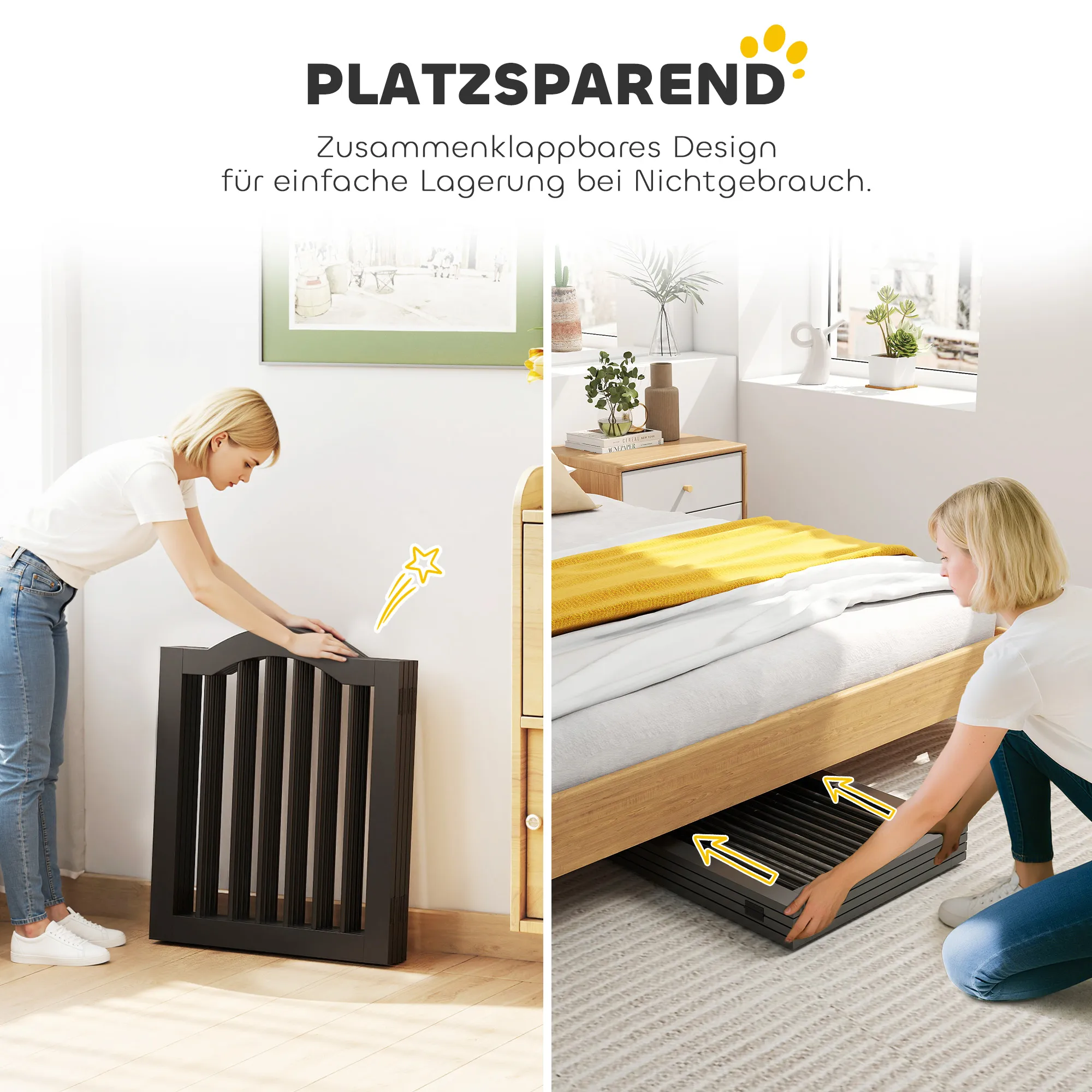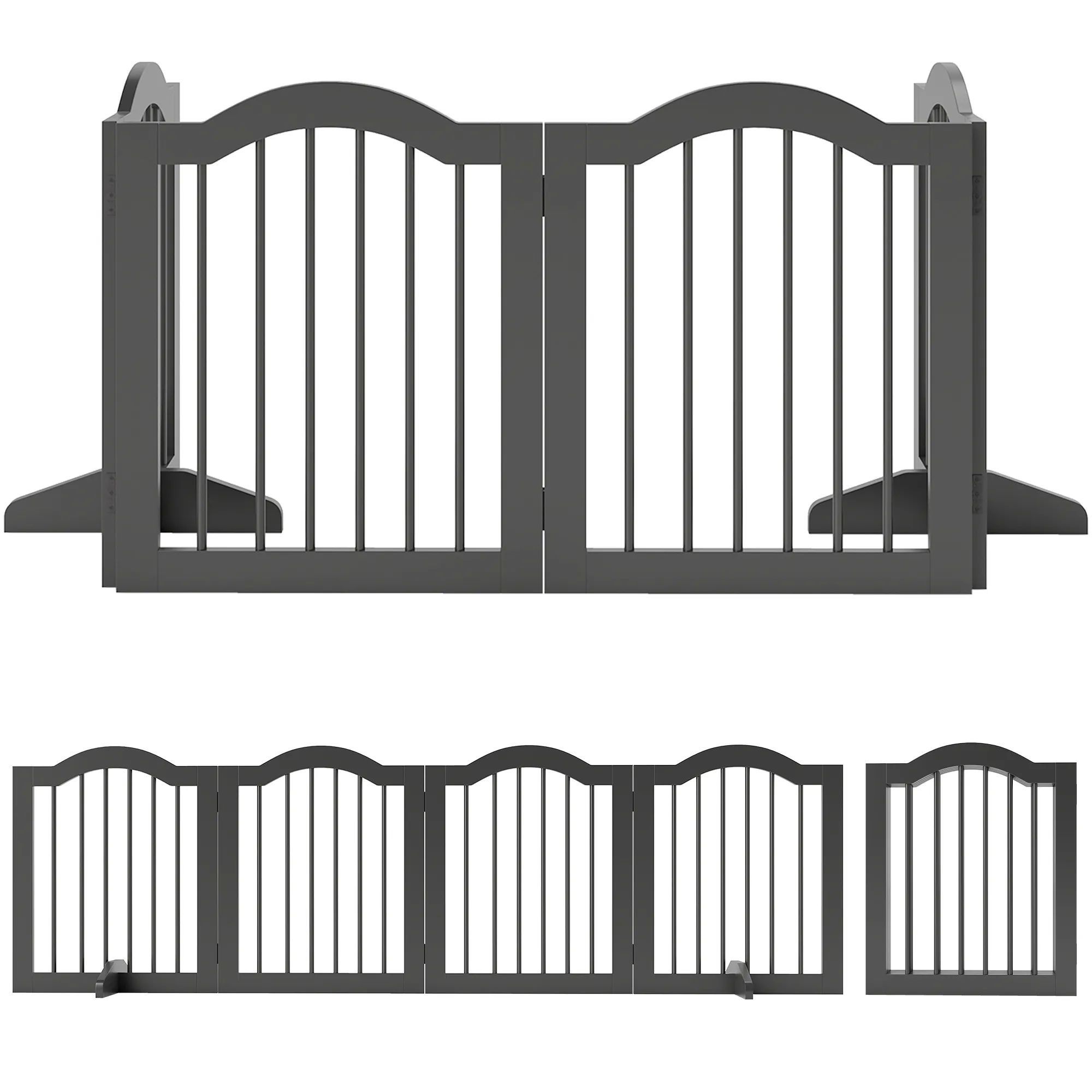 TRUUSK Vrijstaand Afscheidingshek voor Honden – Opvouwbaar – 4 Panelen – 208 x 29,5 x 61 cm – Zwart