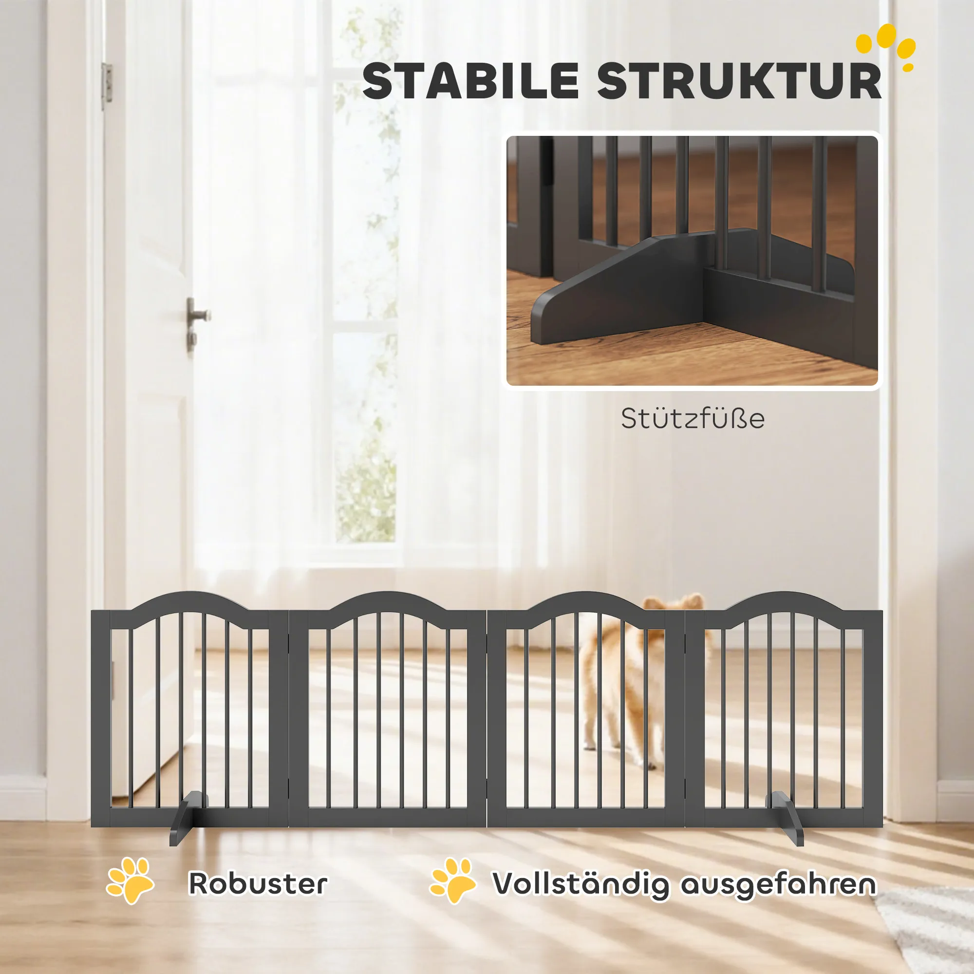 Zorg voor veiligheid en geborgenheid met het TRUUSK hondenhek. Ideaal voor trappen, huisingangen of als ruimtebegrenzer – je hond blijft altijd in zijn beschermde gebied. De stabiele voeten van het hondenhek garanderen een stevige grip, terwijl flexibele verbindingen aanpassing aan elke deuropening mogelijk maken. Bescherm je huis en je viervoeter met dit veelzijdige en robuuste hek. Vertrouw op TRUUSK voor de veiligheid van je favoriet!