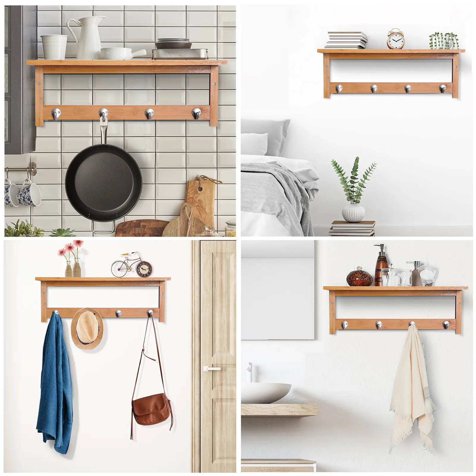 • Praktisch gebruik: gemaakt van natuurlijk bamboe met 4 stevige haken en een draagvermogen van 5 kg
