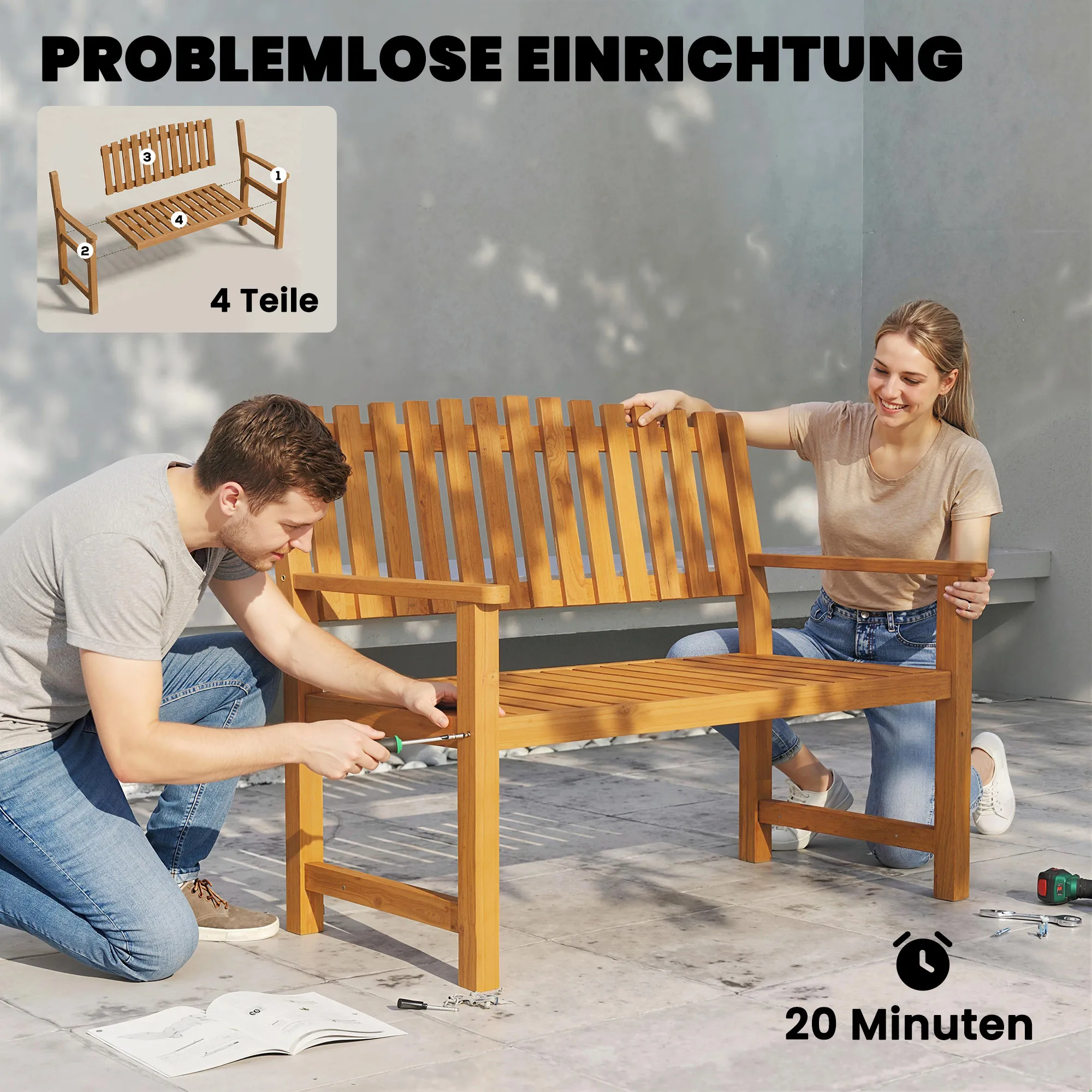 Op zoek naar een stabiele en comfortabele plek voor twee in de tuin? De [BRAND NAME]-tuinbank van massief acaciahout biedt precies dat! Met een klassieke latlook, armleuningen en een draagvermogen tot 320 kg, garandeert deze bank ontspannen gesprekken in de buitenlucht. Verfraai je tuin met deze stijlvolle terrasbank!