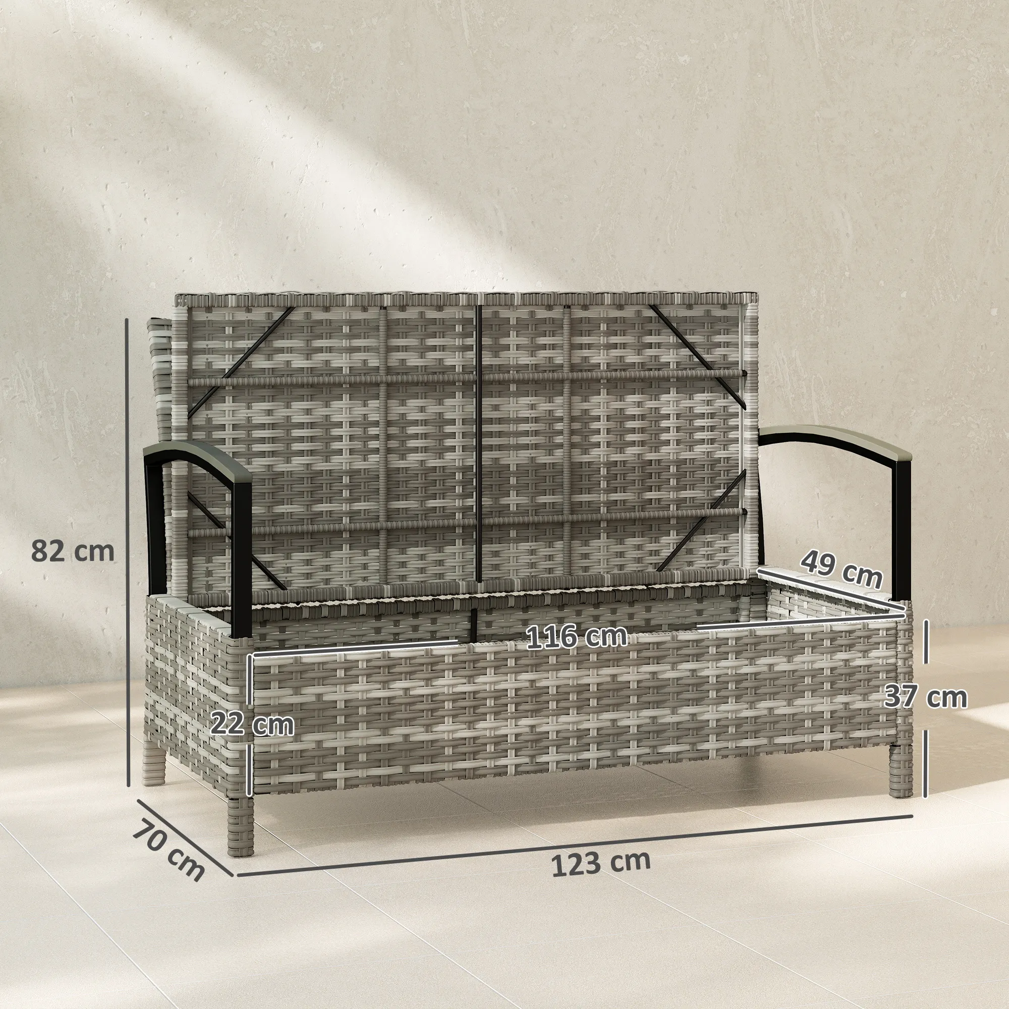 - Praktisch design: combineert een bank met 125L opbergruimte, ideaal voor kleine tuinen