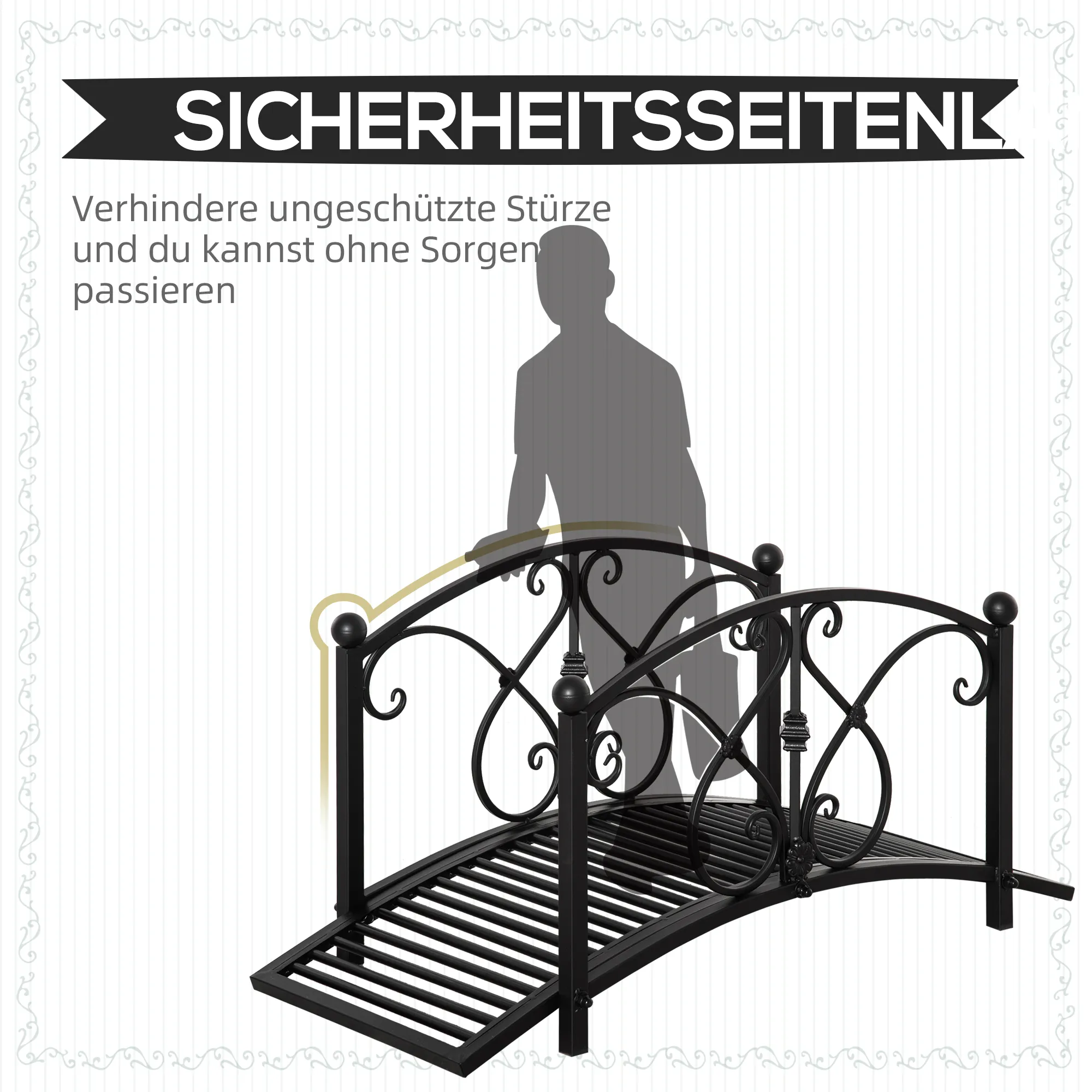 Tuinbrug, Vijverbrug Met Veiligheidsleuning, Sierbrug Tot 100 Kg Belastbaar, 102 X 48 X 49 Cm Zwart