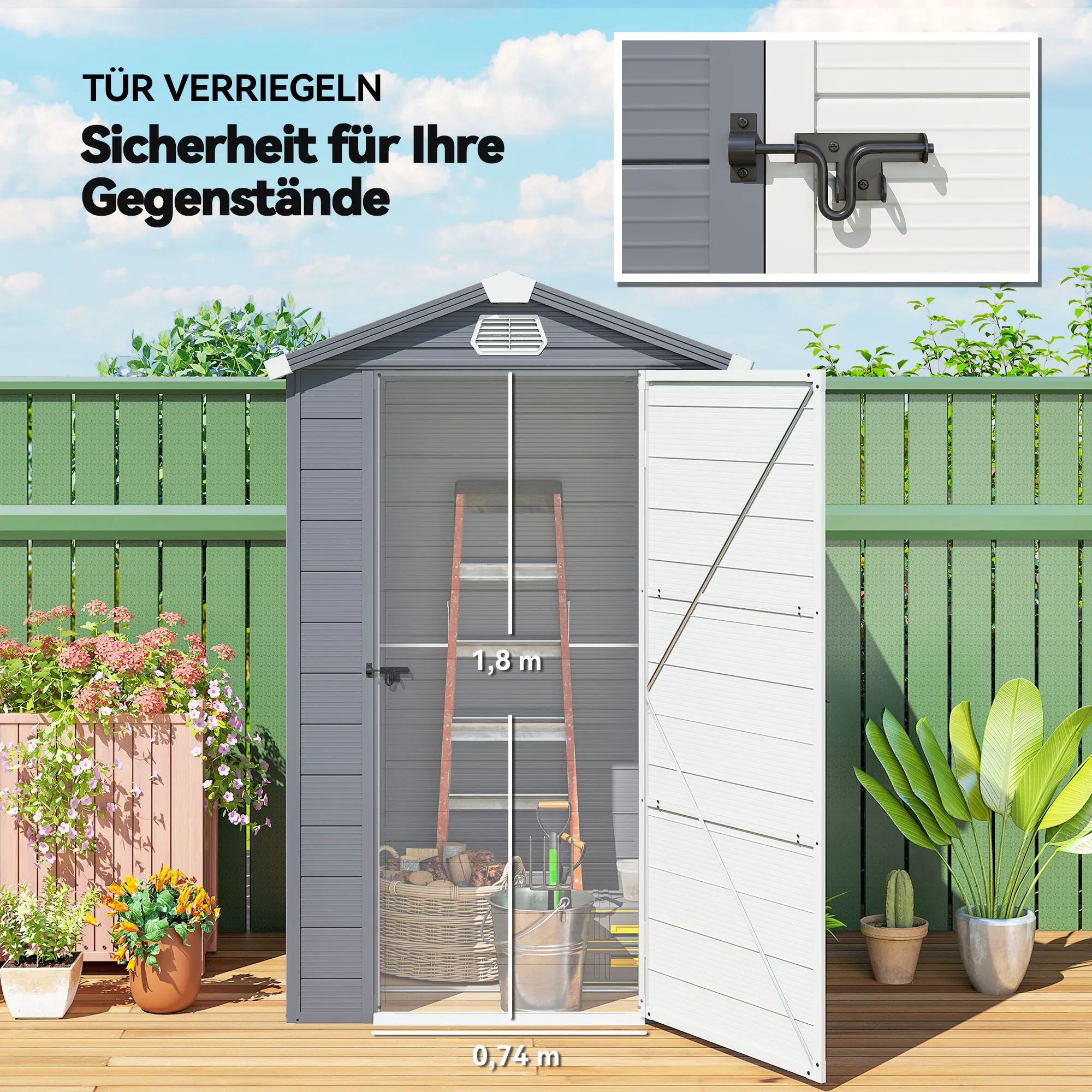 - Veilige opbergruimte: perfect voor tuingereedschap, zwembadaccessoires en meer