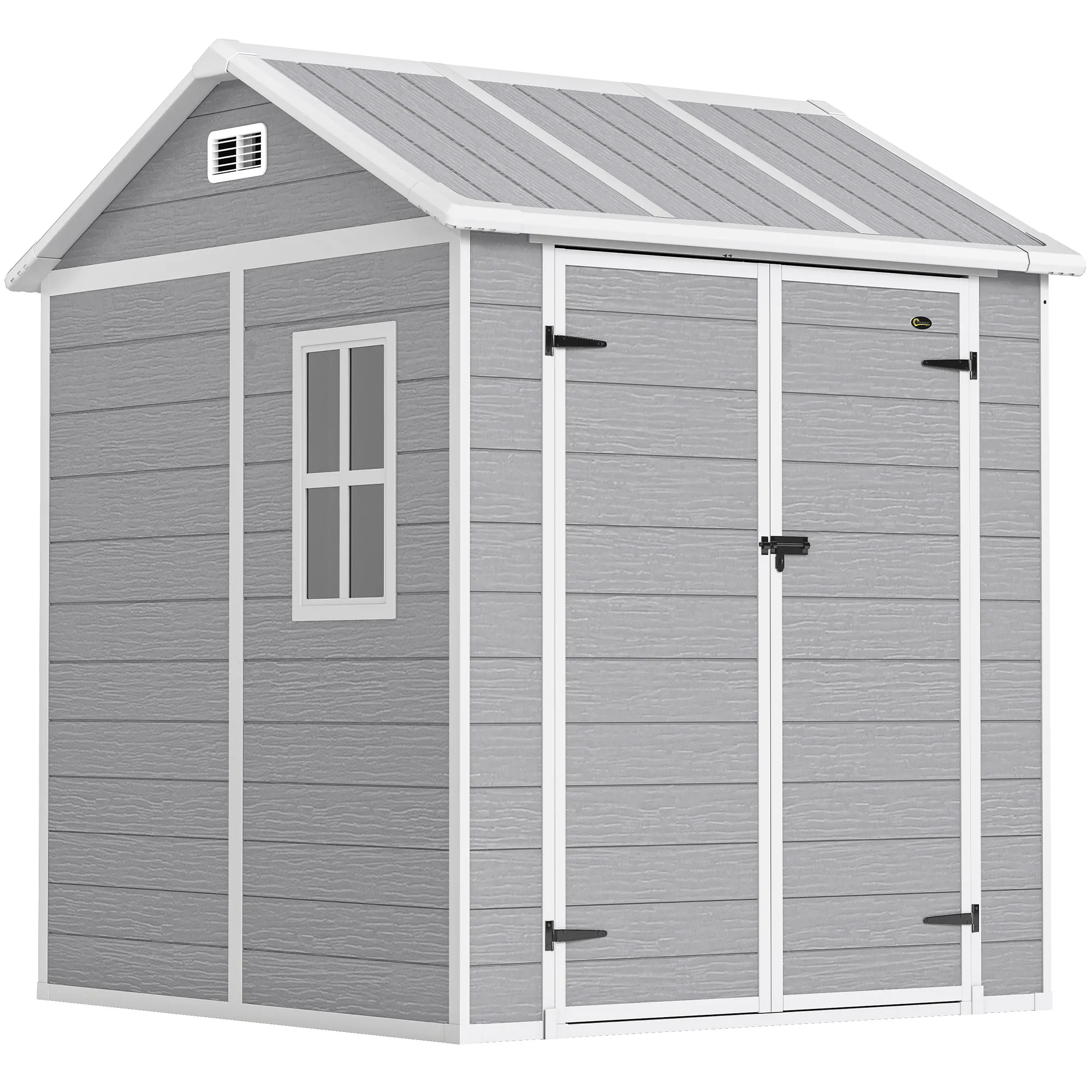 Ontdek de praktische charme van de TRUUSK tuinschuur! Deze tuinschuur biedt een royaal interieurconcept van 12mm dik polypropyleenhars, versterkt met aluminium – waterdicht en UV-bestendig. Met vloerbescherming tegen regen, een raam voor natuurlijk licht en effectieve ventilatieopeningen, combineert deze gereedschapsschuur esthetiek en nut perfect.