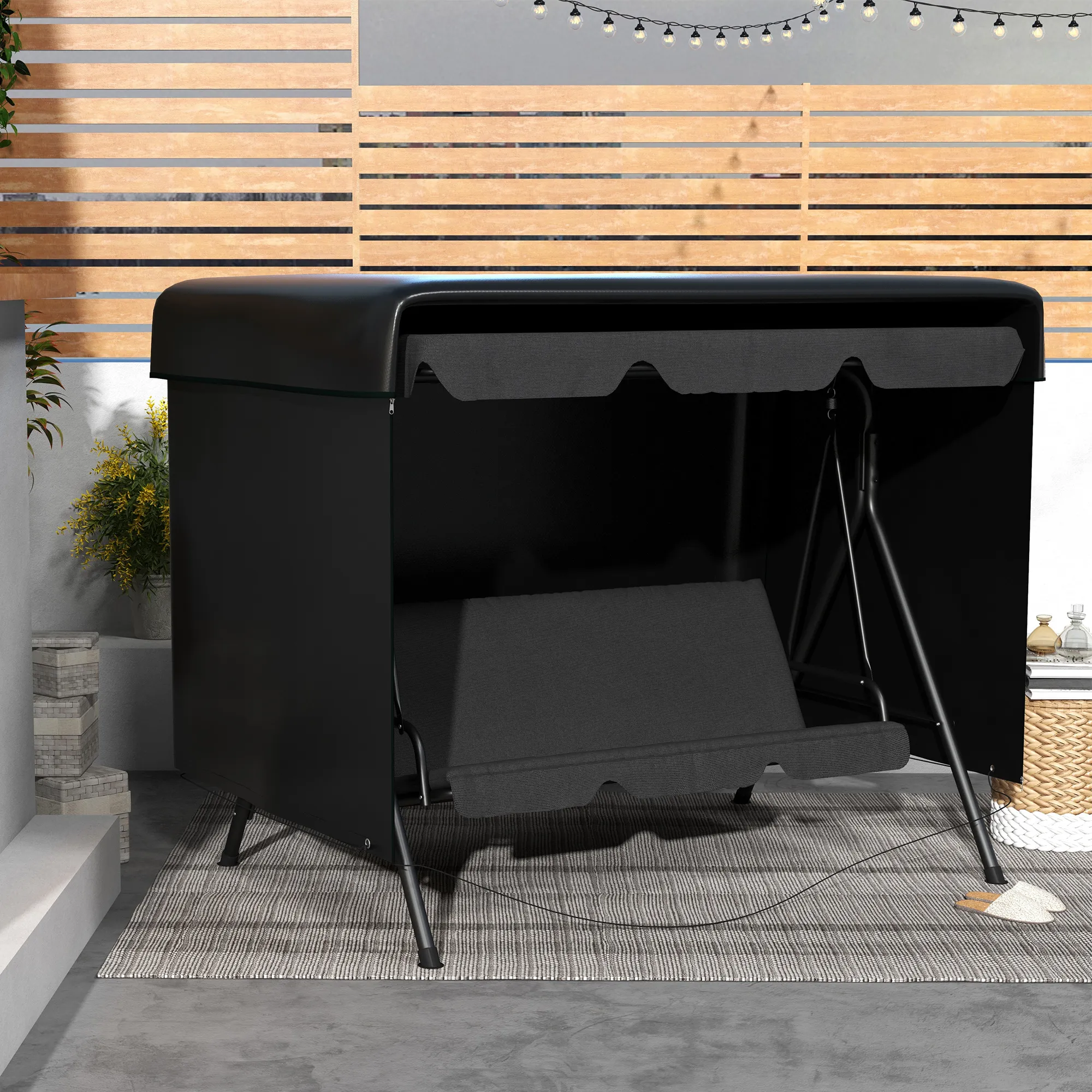 Maak jouw tuinmeubilair compleet met de meubelhoes van [BRAND NAME]. Deze praktische en elegante hoes biedt ultieme bescherming tegen vuil en weersinvloeden voor jouw tuinmeubilair. Gemaakt van polyethyleen met waterdichte coating, is deze hoes weerbestendig en UV-bestendig. Met de handige rits aan de voorkant en het trekkoord met gesp en vier bevestigingsogen, is het eenvoudig te bevestigen en blijft het zelfs op winderige dagen op zijn plek.