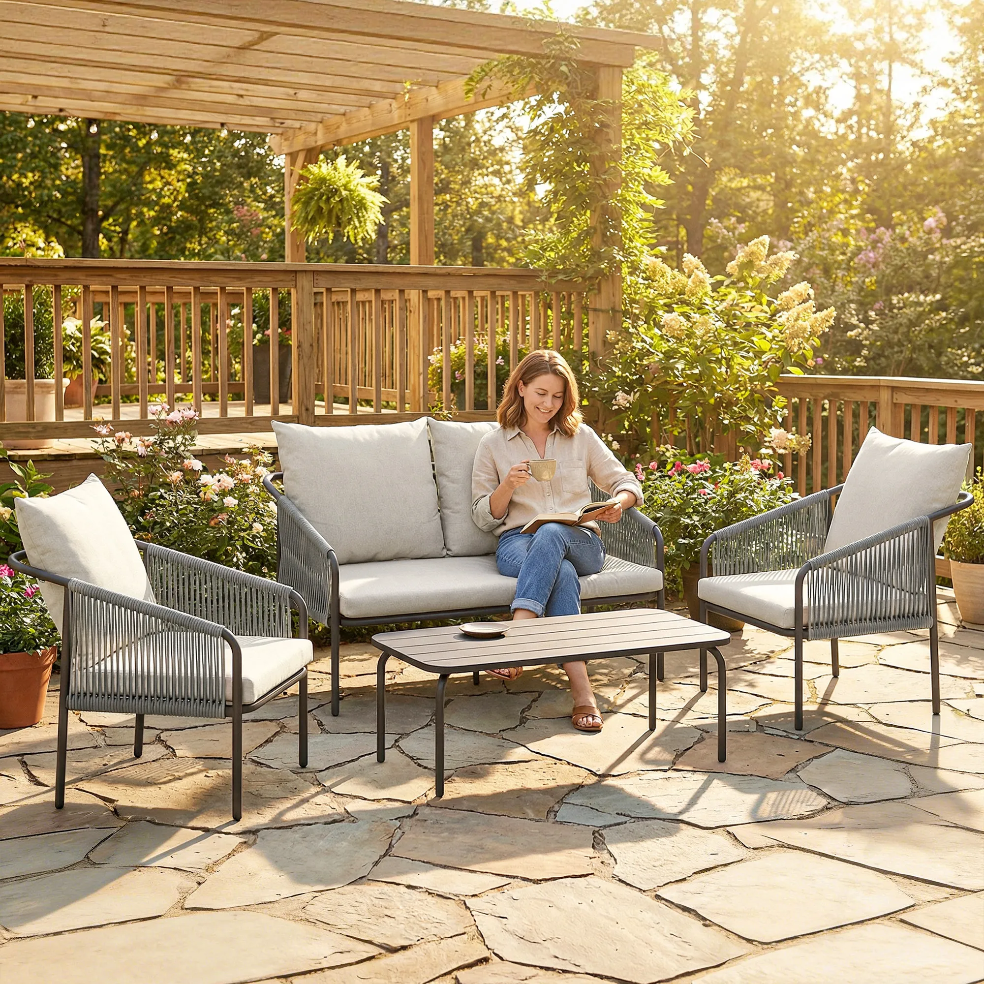 Creëer een gezellige en stijlvolle buitenruimte met de [BRAND NAME] Rattan Lounge Set – bestel vandaag nog!