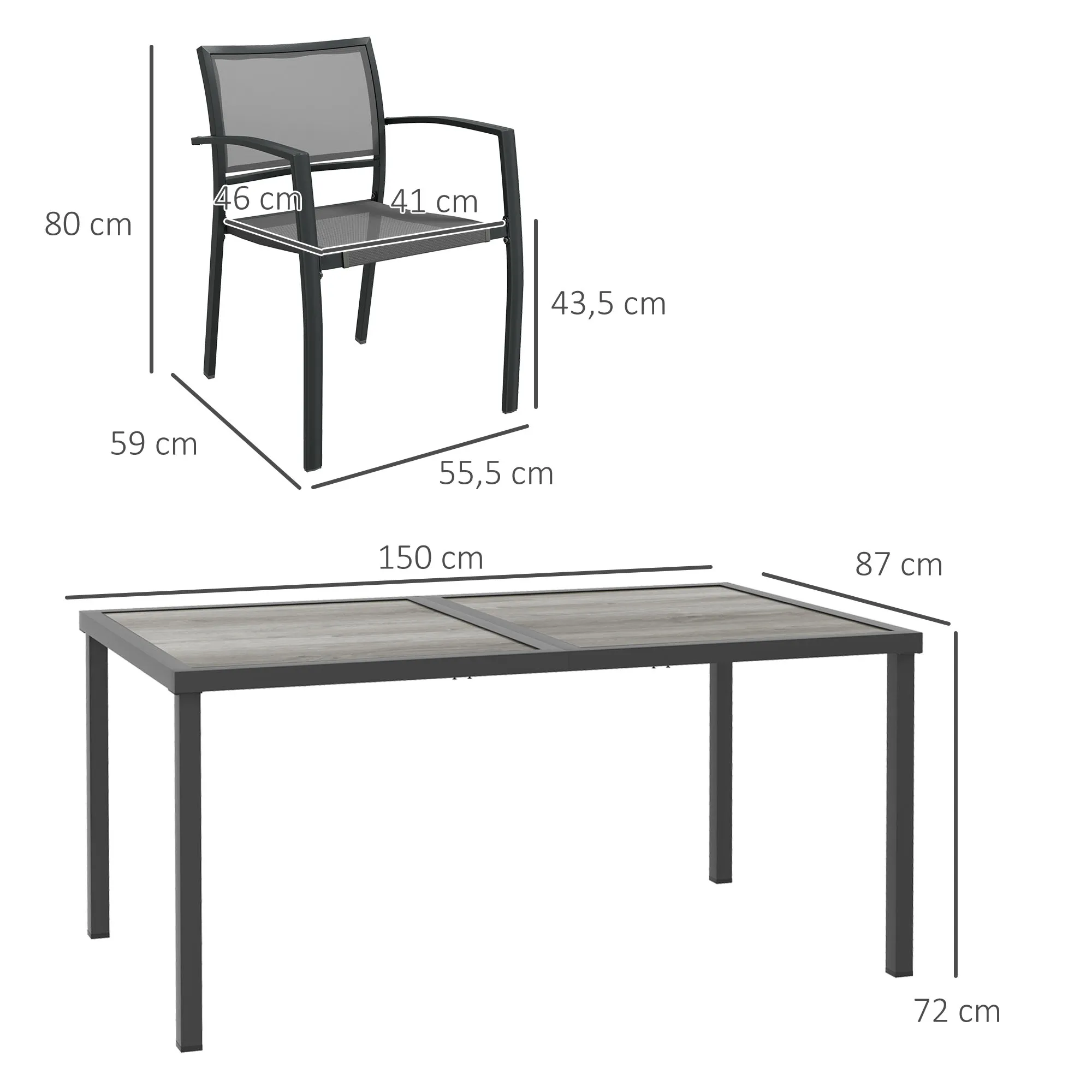 • Afmetingen tafel: 150L x 87B x 72H cm