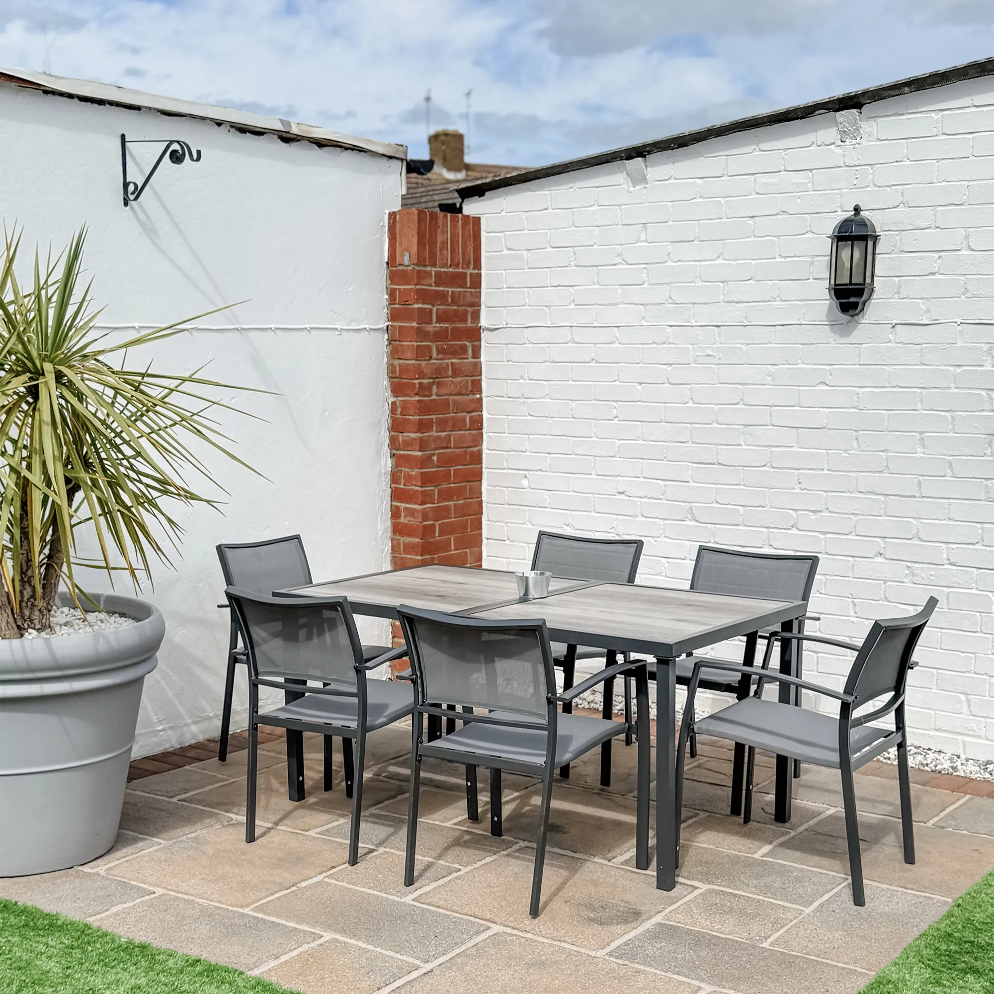 Maak van je buitenruimte een plek om te genieten – bestel vandaag nog de [BRAND NAME] tuintafel met 6 stoelen.