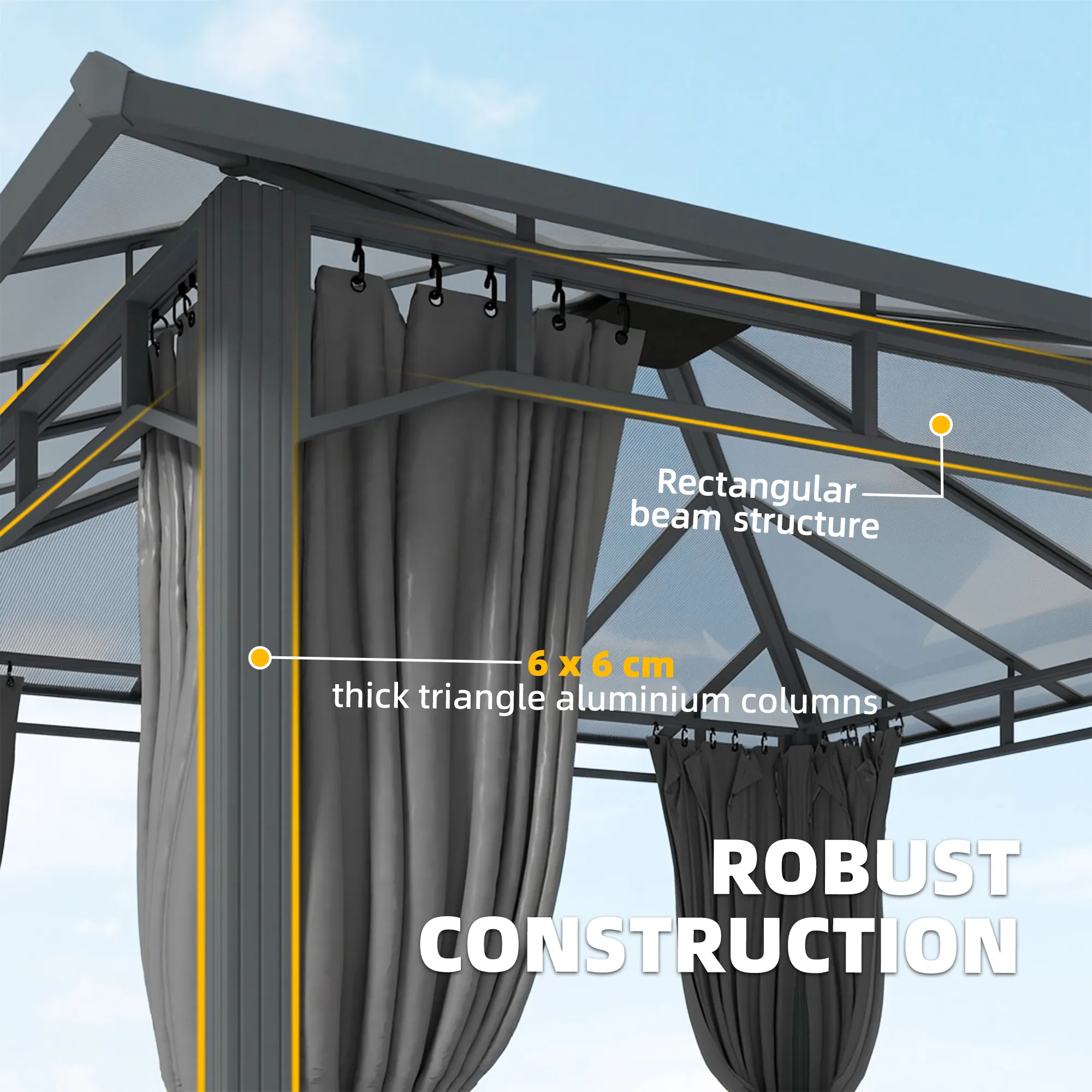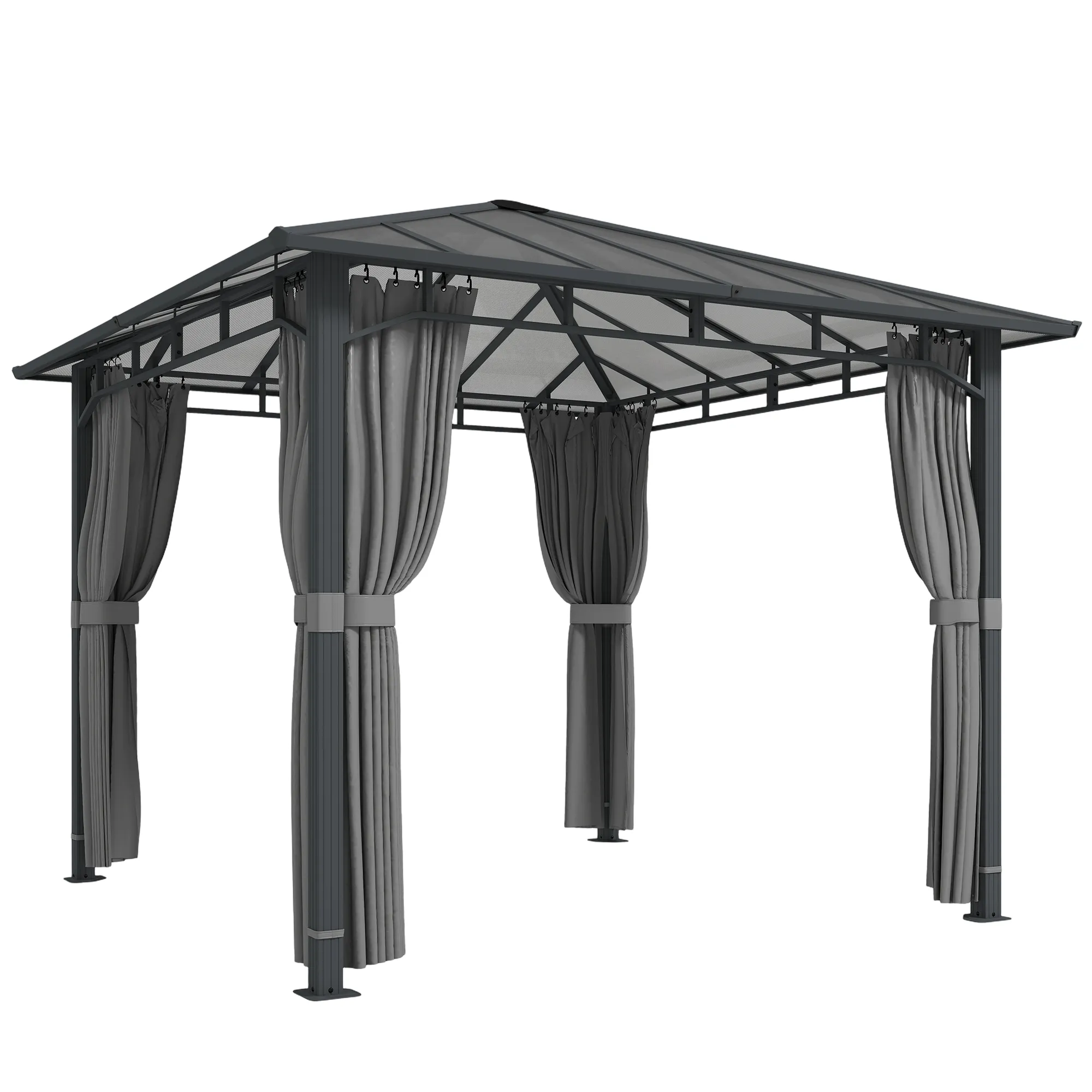 Ervaar ultiem outdoor comfort met het [BRAND NAME] Permanent Hardtop Paviljoen. Het 6 mm polycarbonaat dak beschermt met UPF50+ tegen zon, regen en sneeuw, ideaal voor elk weertype. Het stevige metalen frame en afneembare gordijnen van het tuinpaviljoen bieden privacy of een open sfeer. Veilig verankerd, perfect voor dagelijks gebruik – ontspannen en stijlvol entertainen van vrienden is nog nooit zo eenvoudig geweest!