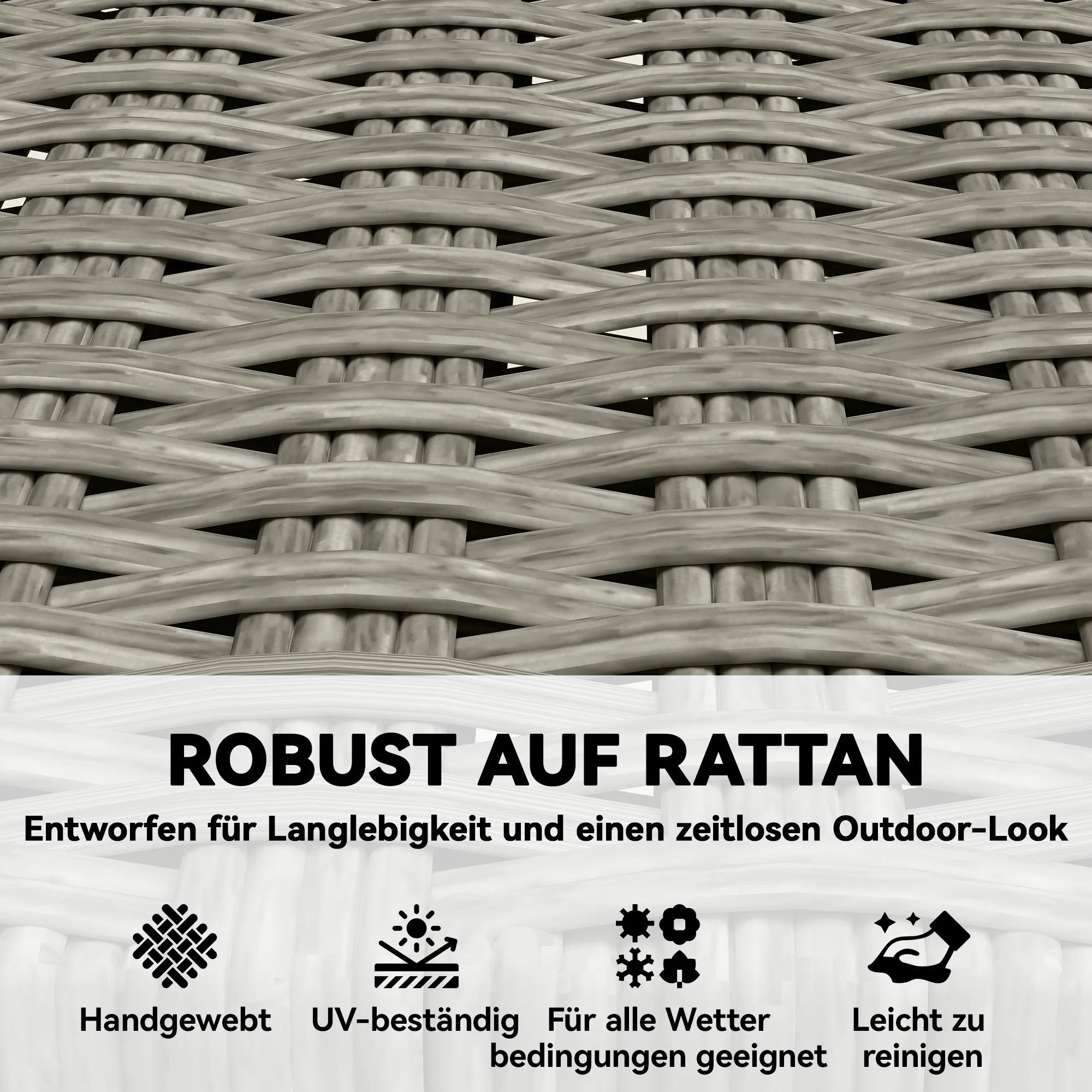 - Duurzaam en weerbestendig: robuuste FSC-Acaciahouten frames en weerbestendig PE-rattan vlechtwerk