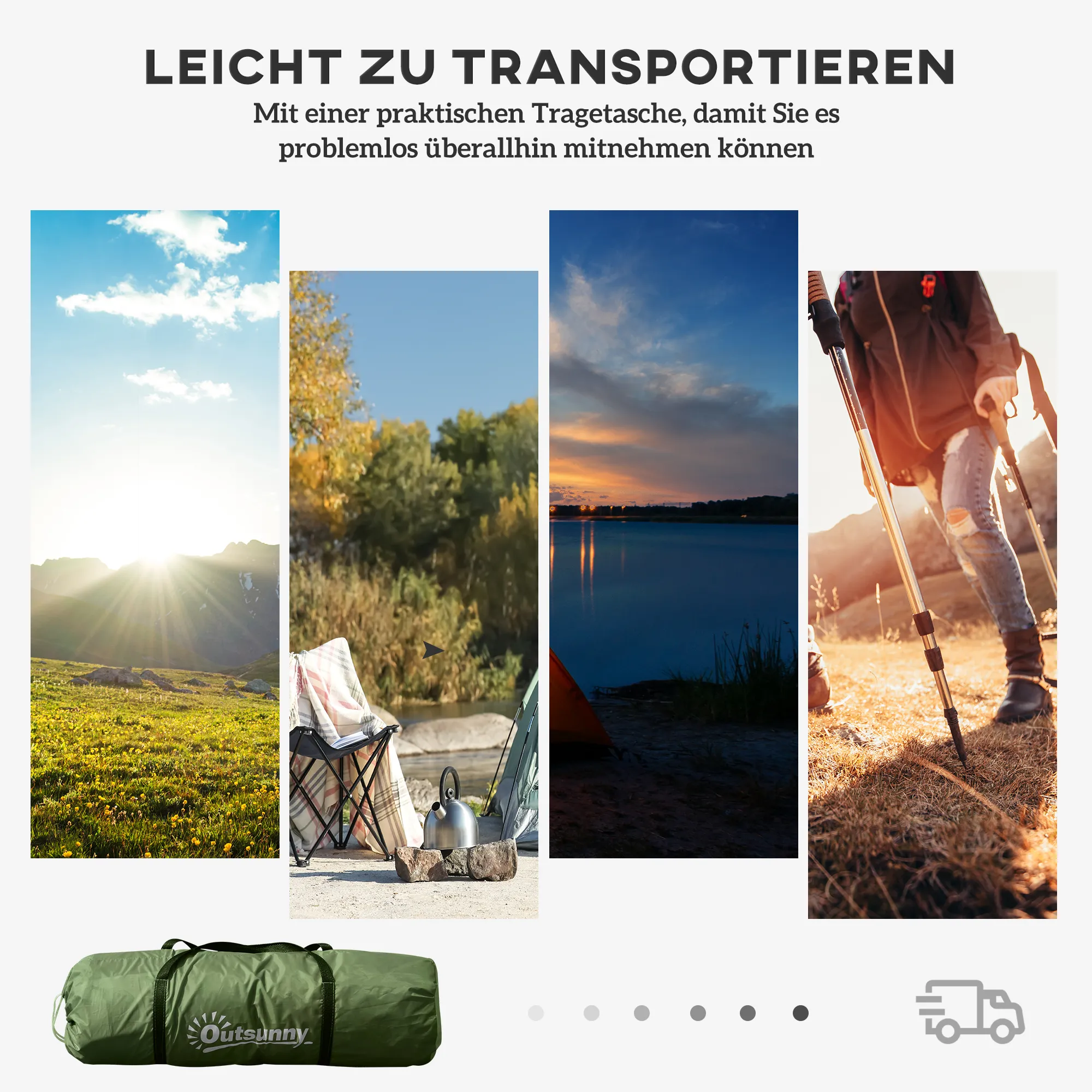 • Stabiel en eenvoudig op te zetten: licht glasvezelframe, 22 haringen en 8 bevestigingslijnen