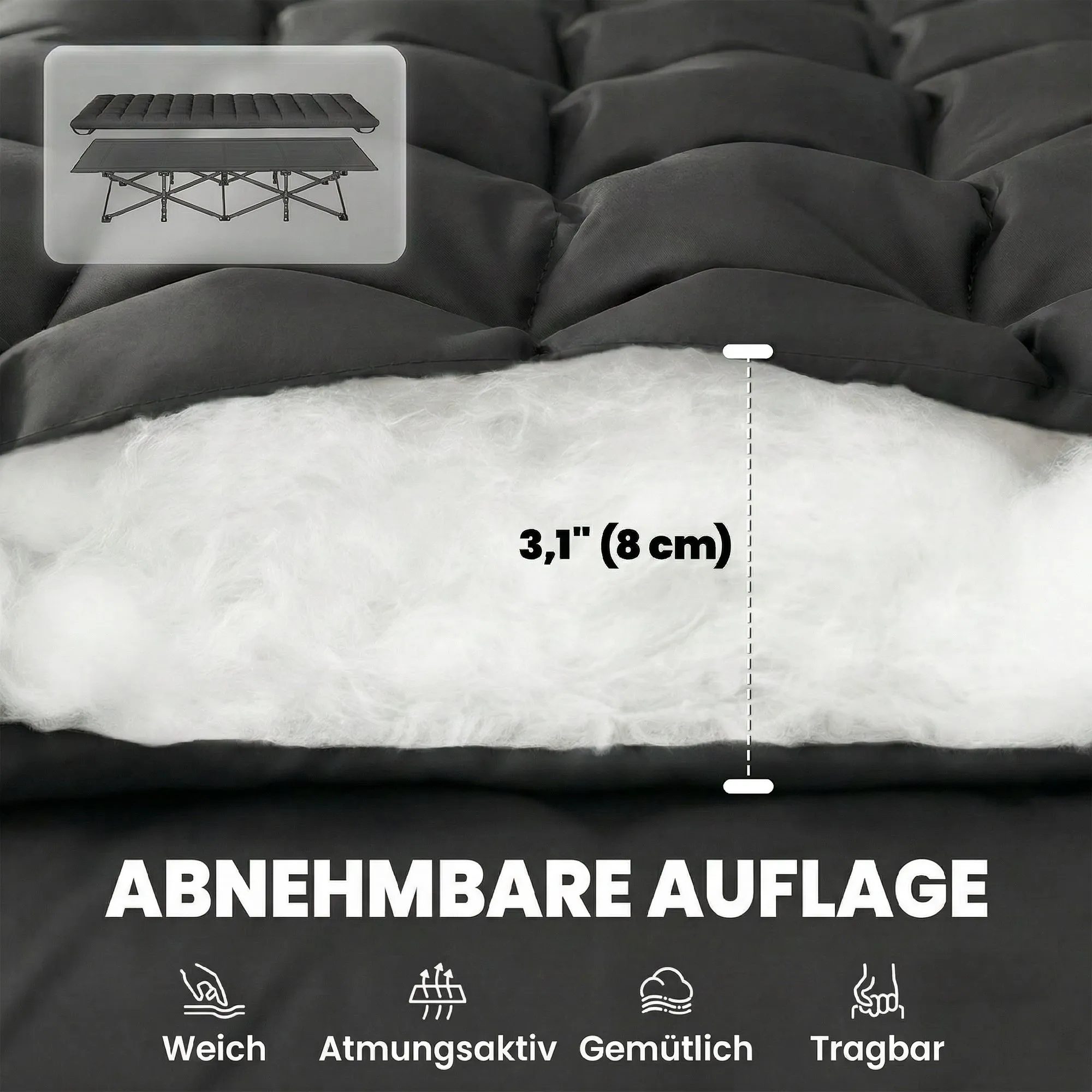 Veldbed Opvouwbaar Campingbed Met Draagtas Campingligstoel Tot 200 Kg Binnen, Buiten, 200 X 80 X 40 Cm Zwart