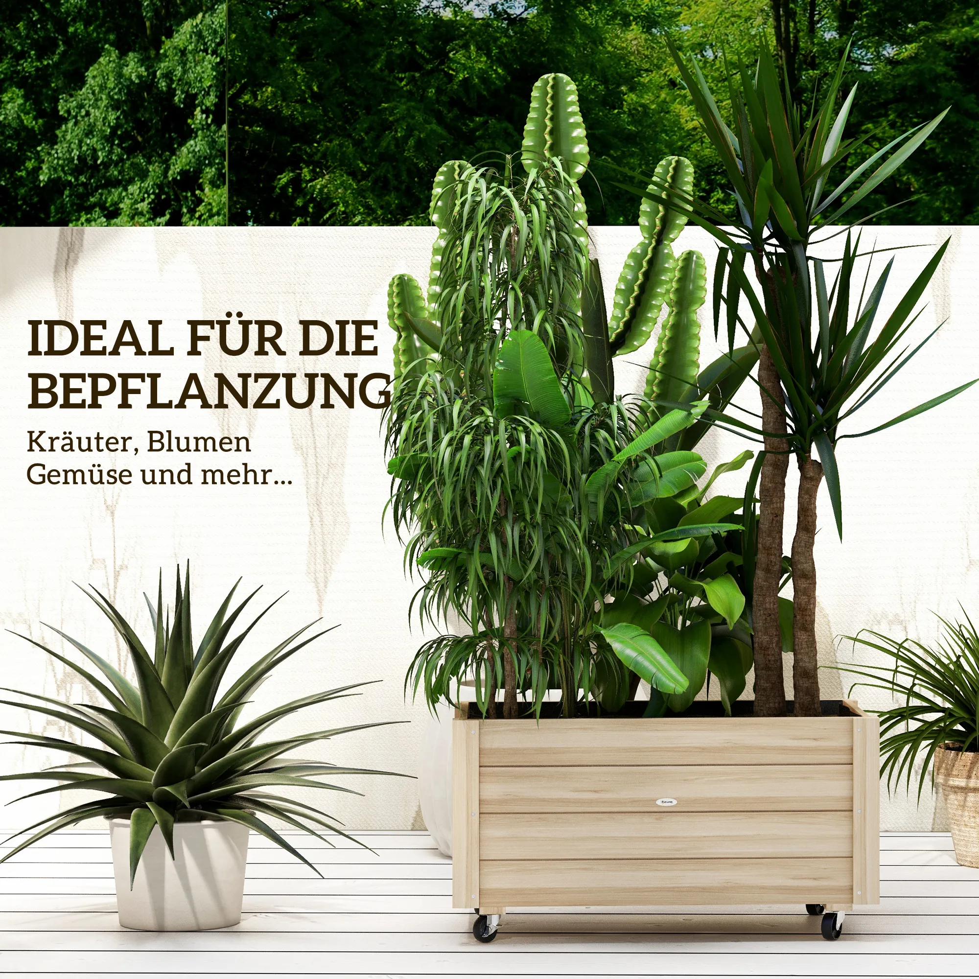 De [BRAND NAME] verhoogde tuinbak is de perfecte metgezel voor elke tuinliefhebber. Gemaakt van massief, duurzaam sparrenhout met een weerbestendige coating, garandeert deze tuinbak een lange levensduur. Dankzij de vier wielen en twee remmen is hij eenvoudig te verplaatsen. De stoffen voering met afvoeropening voorkomt overbewatering, waardoor jouw planten optimaal kunnen groeien en bloeien. Haal de [BRAND NAME] verhoogde tuinbak in huis en geniet van een succesvol tuinseizoen!
