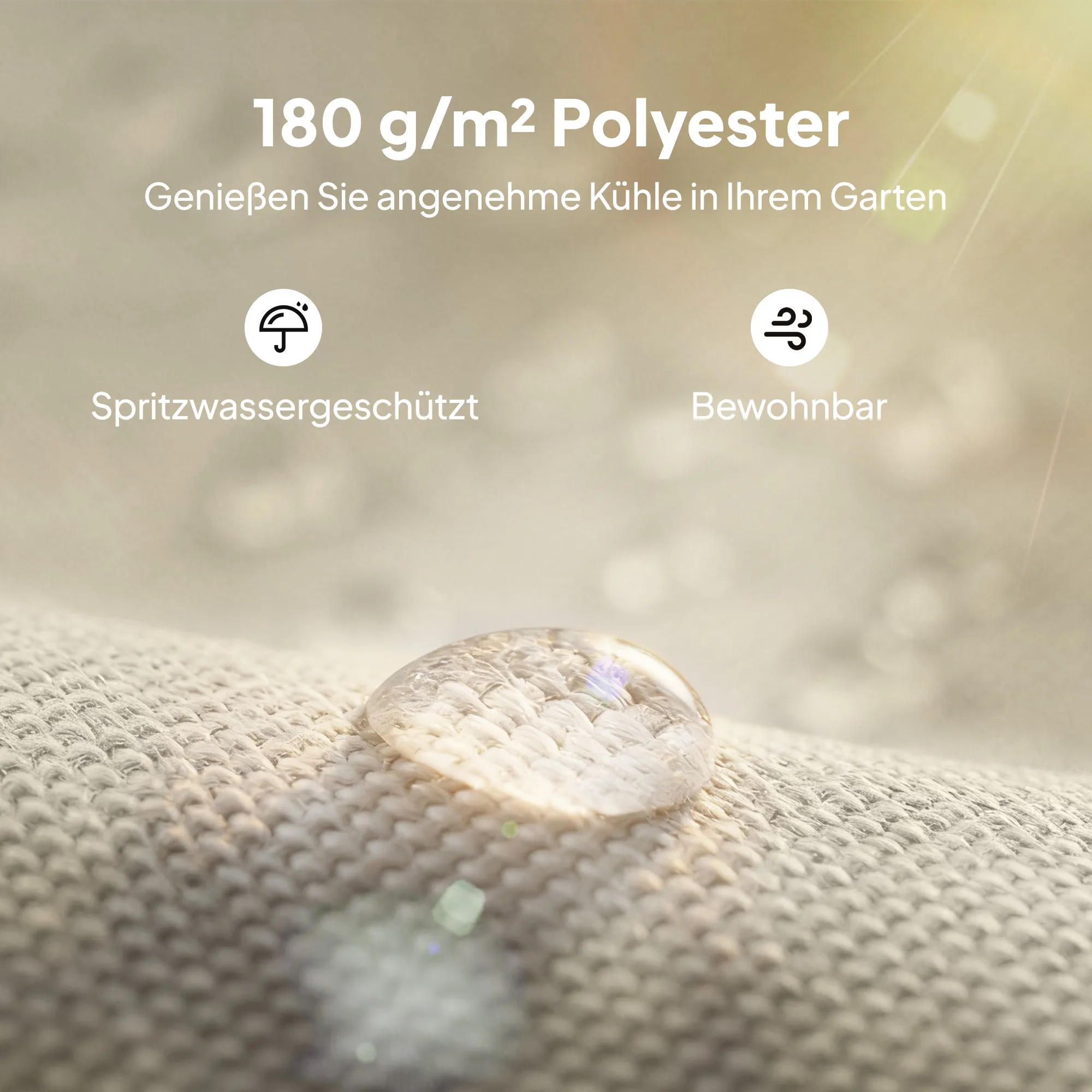 - Duurzaam materiaal: Gemaakt van waterafstotende polyesterstof met 180 g/m² voor lichte bescherming tegen regenbuien