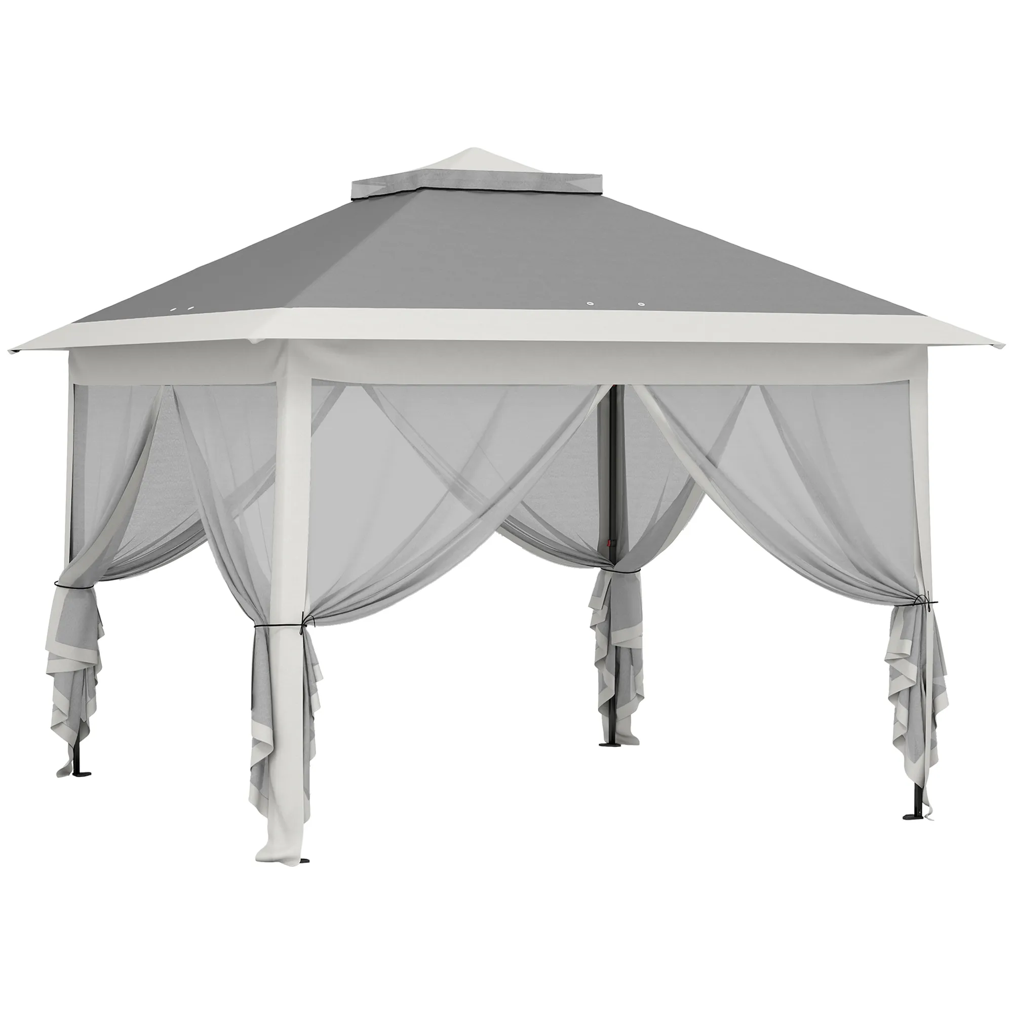 Vouwpaviljoen, Tuinpaviljoen, Metaal En Stofzeil, Netgordijnen, Afvoergaten, 330L X 330B X 288H Cm, Grijs