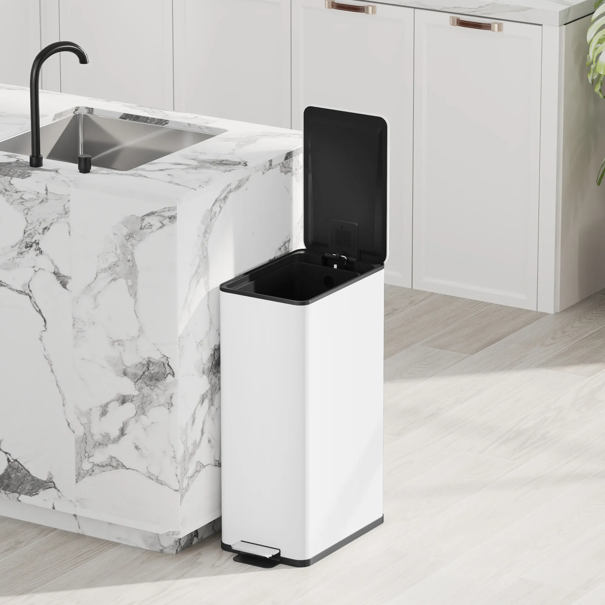 Houd je keuken schoon en geurvrij met de [BRAND NAME] 20L prullenbak met deksel! Dankzij het soft-close mechanisme en de geurdichte sluiting blijft het binnenin lekker fris. Gemaakt van vingerafdrukbestendig roestvrij staal, brengt deze stevige en stijlvolle prullenbak organisatie, stijl en kwaliteit in je keuken. Het handige voetpedaal en de uitneembare binnenbak maken gebruik en schoonmaken een eitje. Een perfecte combinatie van functionaliteit en modern design voor jouw huis.