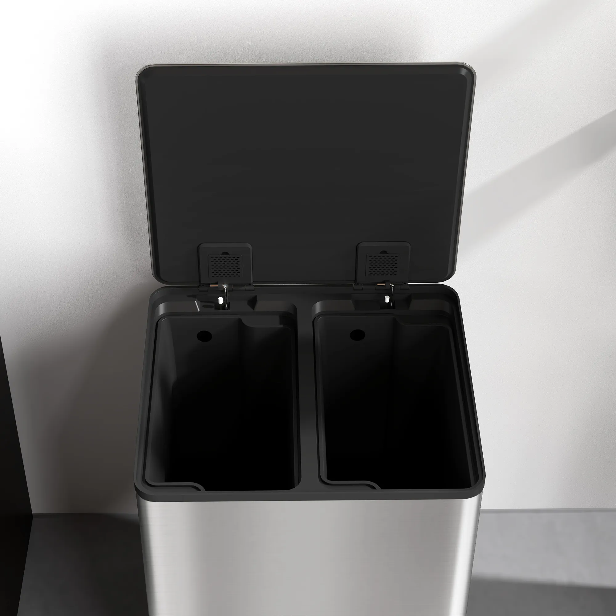 - Eenvoudige afvalscheiding: twee 30L compartimenten