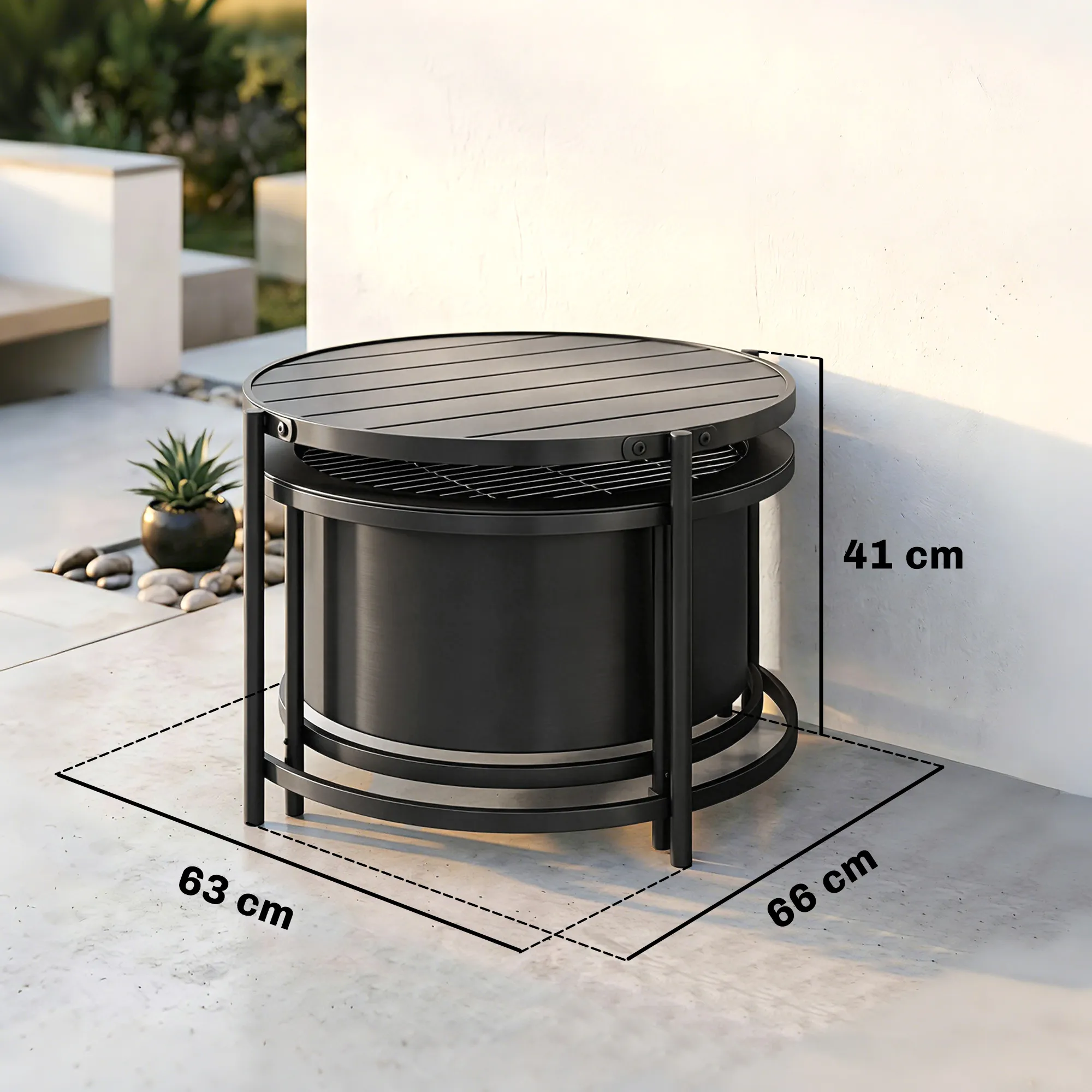 Als de avondkoelte komt, wil je nog lang genieten van gezelligheid en warmte. Met de vuurschaal van [BRAND NAME] hoef je niet vroeg naar binnen. Deze veelzijdige vuurkorf zorgt voor warmte en sfeer, en met het meegeleverde 49 cm grillrooster kun je zelfs barbecueën op houtskool of hout. Het moderne design van de vuurschaal past perfect bij elke terrasstijl en maakt van je terras een knusse plek voor warme avonden en gezellige maaltijden.