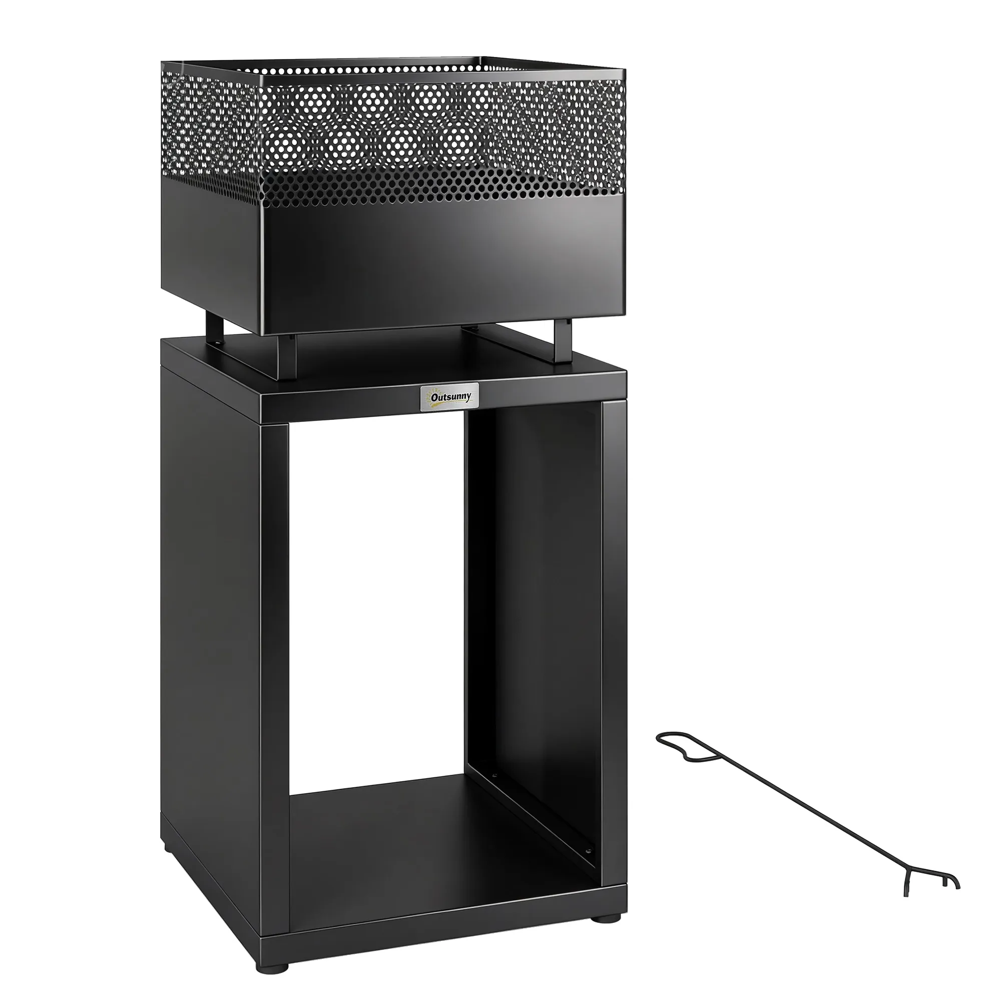 Vuurkorf 39 X 39 X 87 Cm Met Houtopslag, Koolrooster En Verstelbare Voeten, Zwart