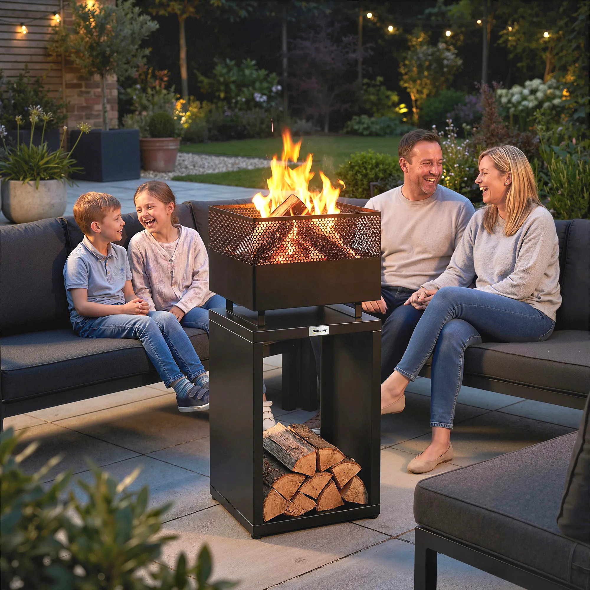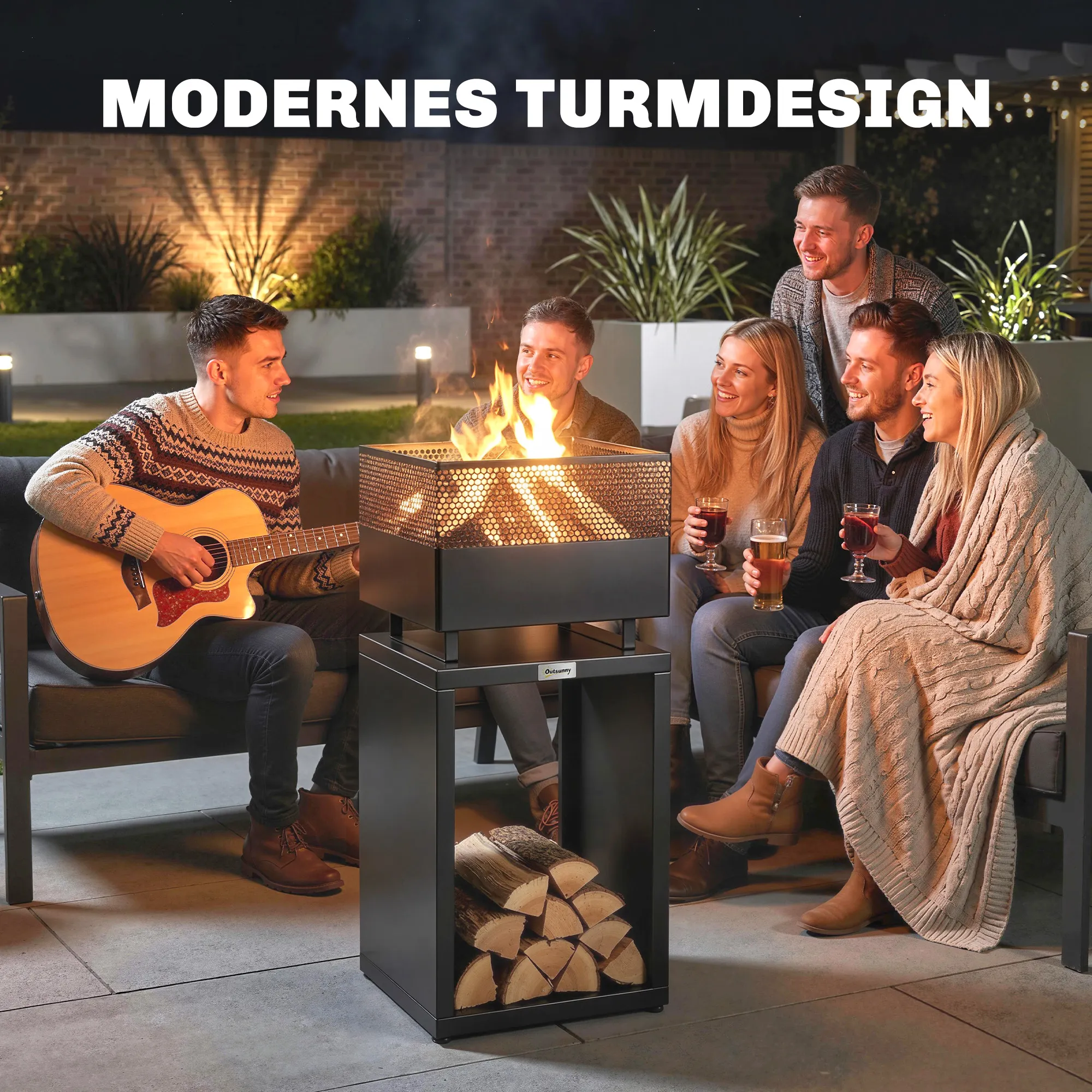 Maak van je koele avonden warme en gezellige nachten met deze elegante vuurschaal met torendesign en geïntegreerde houtopslag. Dankzij het stevige metaal en verstelbare voeten biedt deze vuurschaal stabiliteit en een opgeruimd terras voor jouw ontspannen avonden onder de sterrenhemel.
