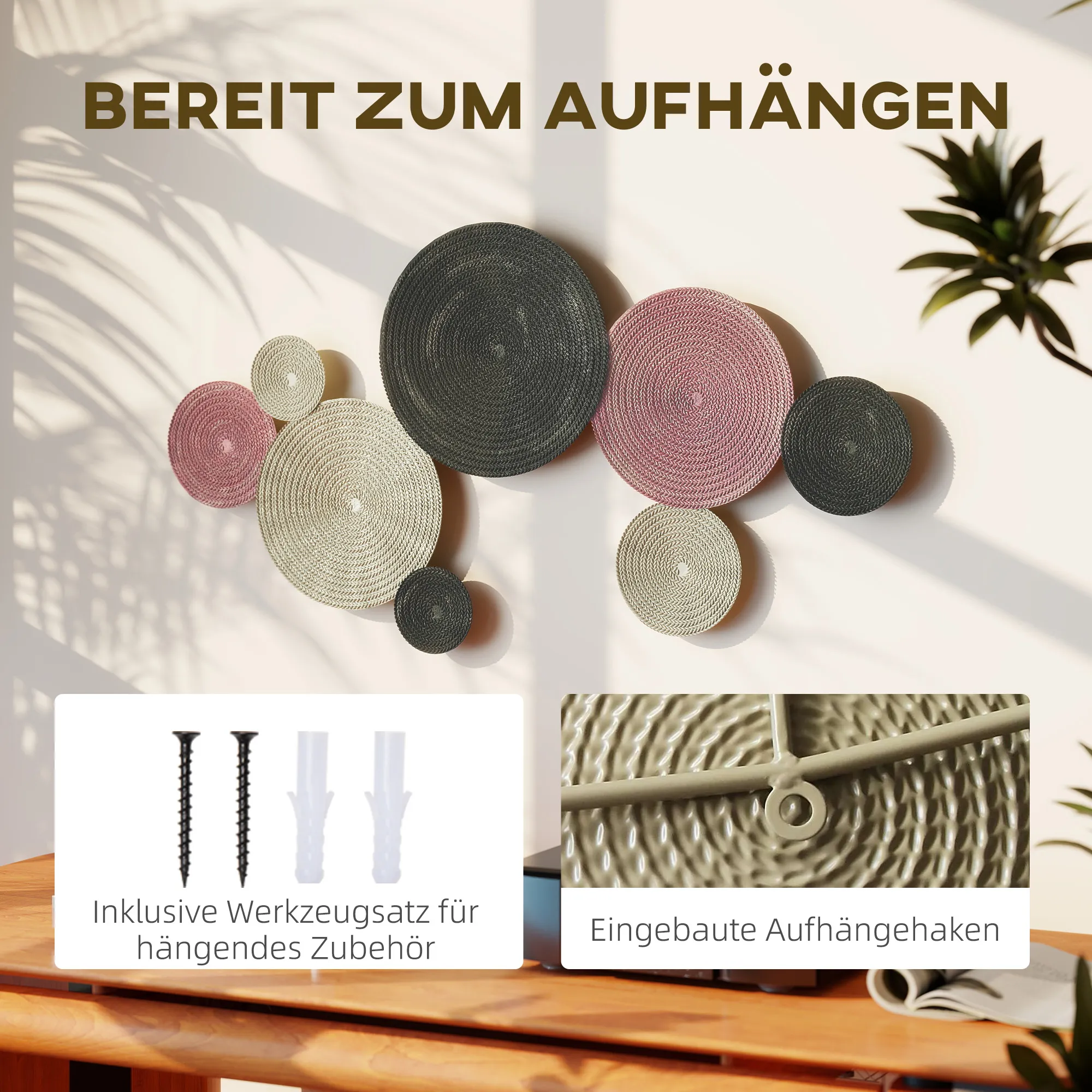 Geef jouw kale muur een moderne touch met de TRUUSK metalen afbeelding. Dit unieke kunstwerk bestaat uit 8 metalen schijven in verschillende maten die in elke richting opgehangen kunnen worden. Het abstracte geometrische ontwerp trekt meteen de aandacht en geeft jouw ruimte een luxe uitstraling.