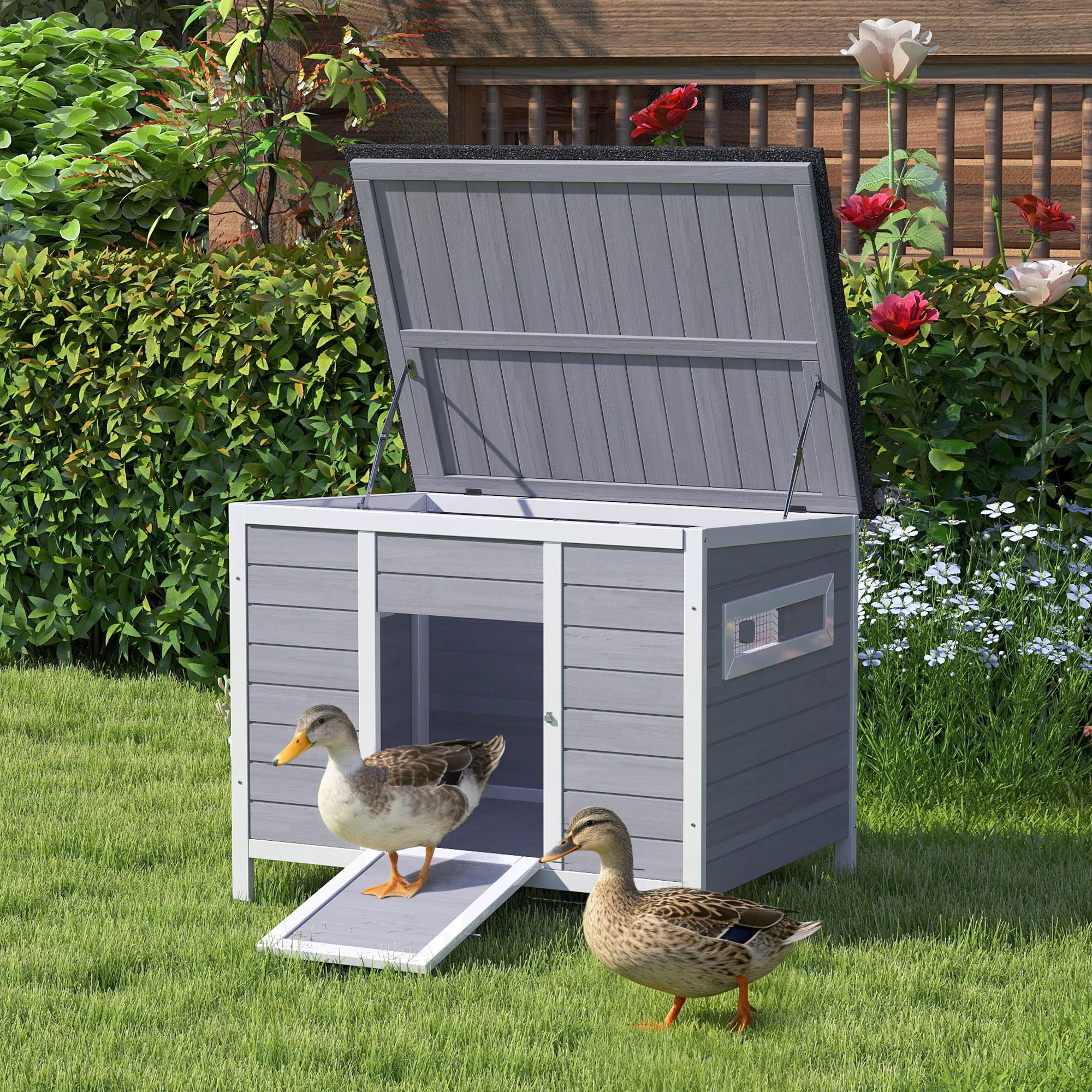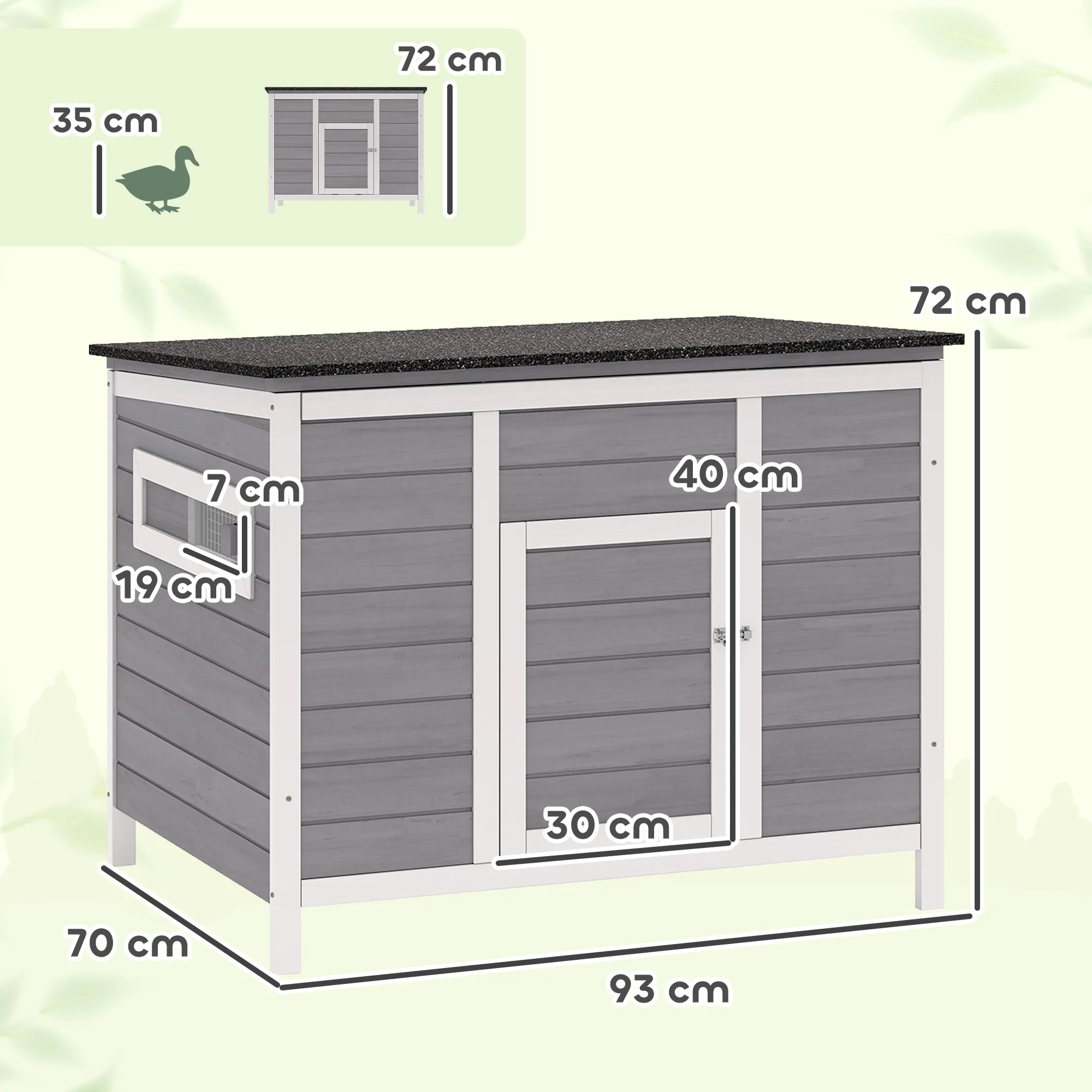 Weerbestendig Eendenhok Van Hout Met Uitneembare Vloer, Schuifraam, Opklapbaar Asfaltdak 93x70x72cm Grijs