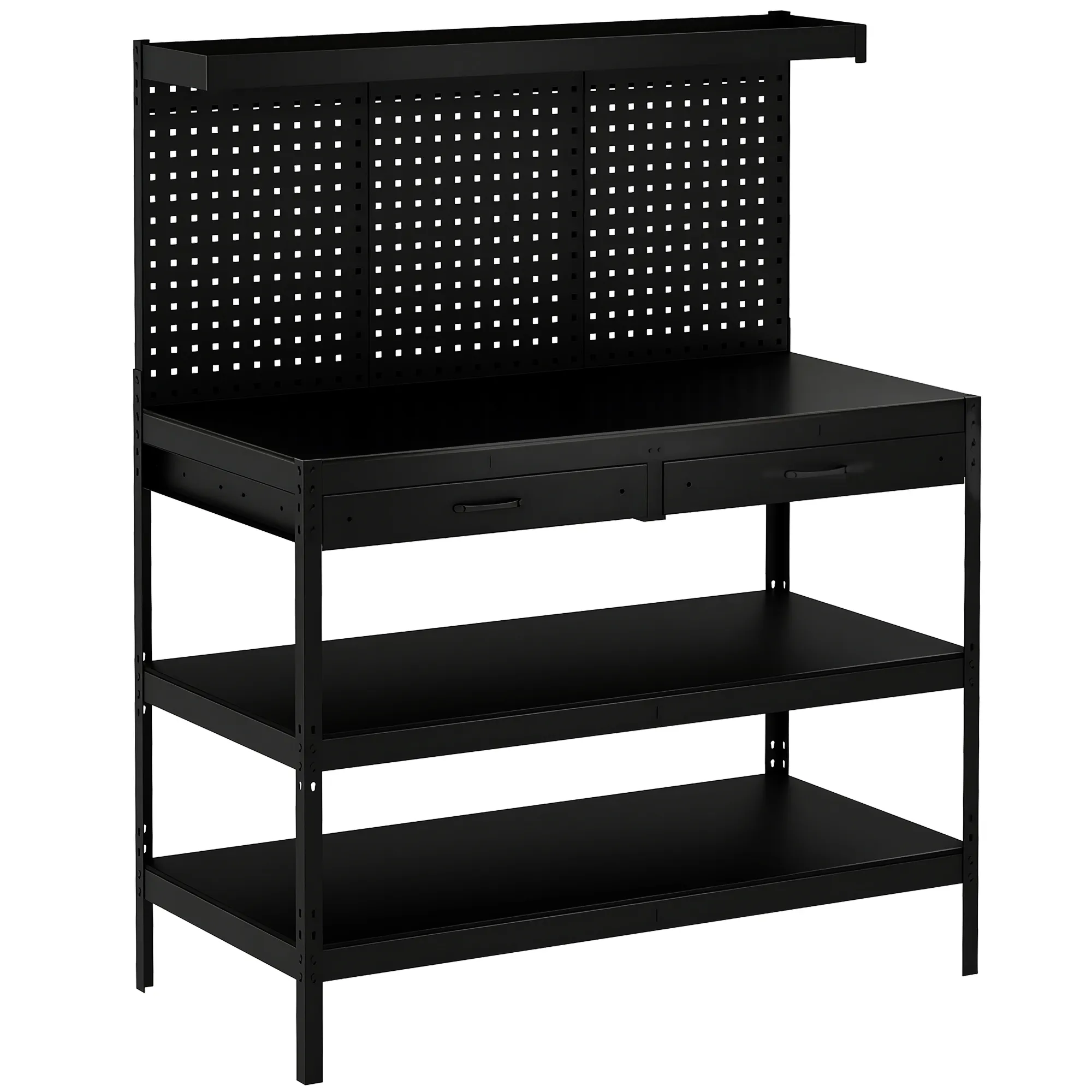Werkbank Met Verstelbare Planken, Robuuste Werkstation Met Gatenbord En 2 Lades, 122 X 61 X 156 Cm, Zwart
