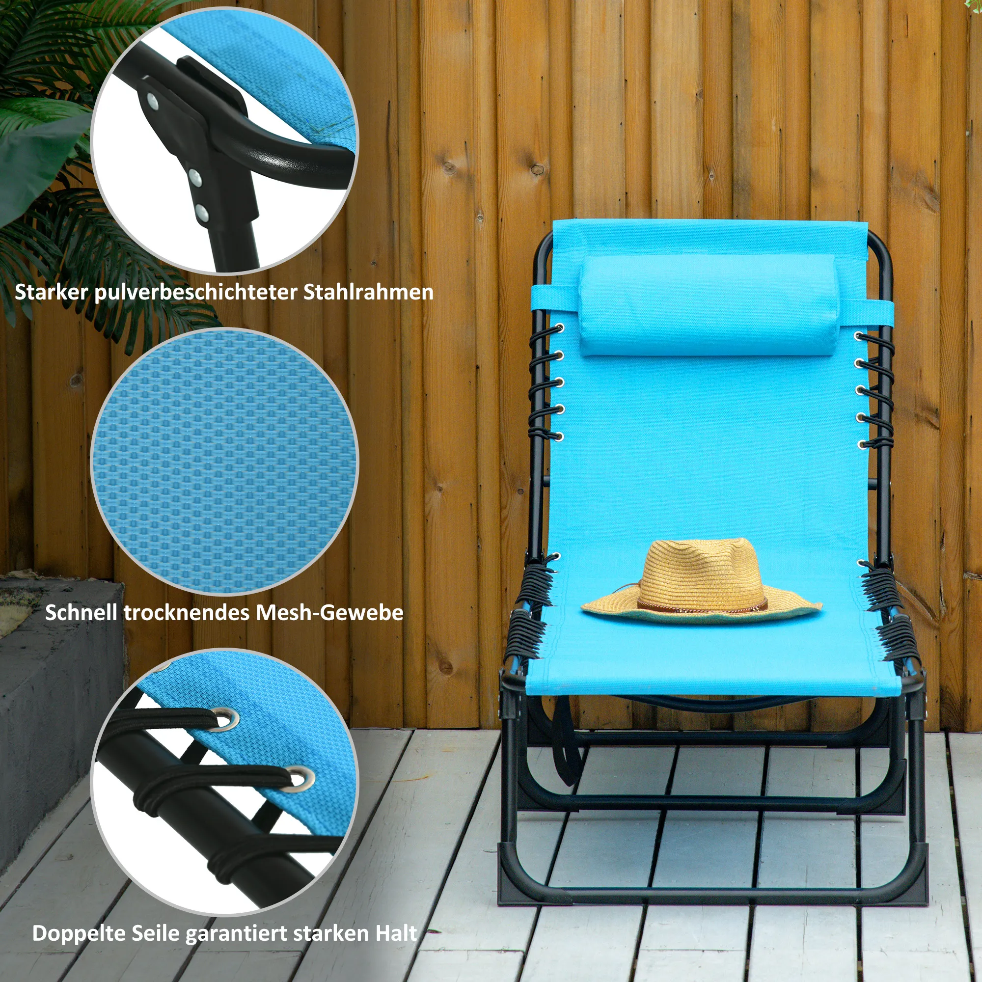 Zonneligstoel, Opvouwbaar, Ademende Hoes, Metalen Frame, 189 X 58 X 30 Cm, Blauw