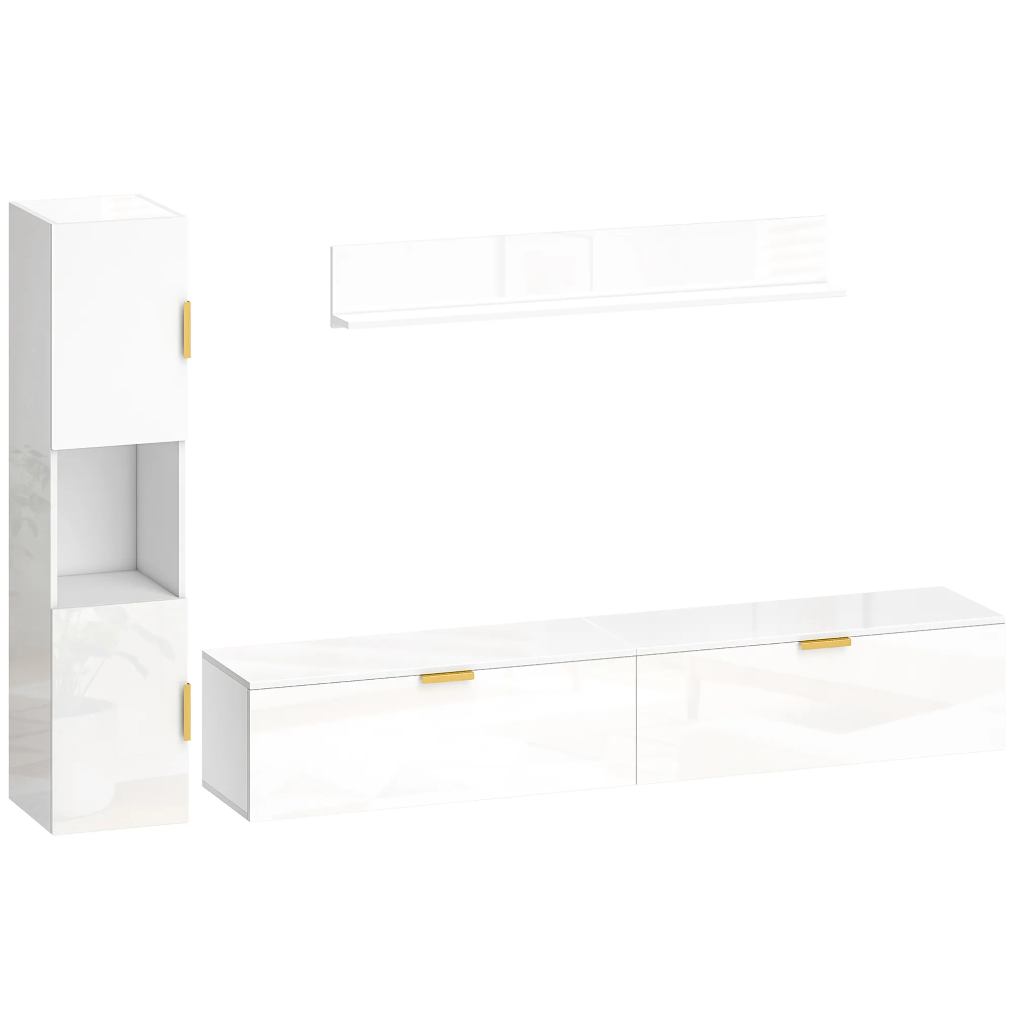 Is jouw woonkamer niet zo ontspannend door de rommel? De [BRAND NAME] TV-kast set biedt de perfecte oplossing. Met een zwevend ontwerp dat de vloerruimte opent en veelzijdige opbergruimte achter glanzende deuren, transformeer je jouw woonruimte in een stijlvolle, georganiseerde oase van welzijn met deze harmonieuze driedelige TV-kast set.